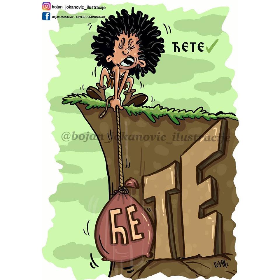 Karikatura: Bojan Jokanović maj 1, 2019 Karikatura dana Vi ćete ili vi će te? Piše se vi ćete. Ću, ćeš, će; ćemo, ćete, će. Karikatura: Bojan Jokanović ključne rečiKarikatura danaKarikature Bojana Jokanovića FacebookTwitterEmailViberReddItWhatsAppTelegramPrintPinterestTumblrLinkedinMixVKDiggLINENaver Facebook Prethodni tekstNedeljna supa čuva porodicu TwitterEmailViberSledeći tekstDnevna doza aforizma: Monika Kovačević P.S.Master Bojan JokanovićRođen 2. maja 1985. godine u Tuzli, živi u Doboju. Diplomirani Teolog, radi kao vjeroučitelj. Bavi se crtanjem, sviranjem gitare…"satiričnim" temama iz svakodnevnog života, ne/kulture, obrazovanja, mentaliteta...Čovek pre svega. PROČITAJTE! Knjige Petar Pismestrović: Partija pokera – knjiga karikatura Petar Pismestrović - dec 4, 2025 Satatatira Karikatura dana Petar Pismestrović - avg 13, 2025 Satatatira Karikatura dana Petar Pismestrović - avg 13, 2025 Atelje Tajna „Tajne večere“ Zoran Todorović - apr 9, 2018 Satatatira Dnevna doza aforizma Nenad Živković - maj 10, 2016 Zanimljivosti Anketa „Pokazivača“: Činimo li dobra dela? Zoran Todorović - maj 28, 2015 Zanimljivosti Za miran san i dobar dan: Ogi i bubašvabe (21) Đorđe Todorović - feb 18, 2017 Satatatira Nadini aforizmi Nada Kljajić - mar 1, 2017 Priključenija Nole u desetom polufinalu Vimbldona u karijeri! Zoran Todorović - jul 7, 2021 Otvorena vrata Nastava u prirodi – uživo Jovanka Ignjatović - mar 30, 2014 Mesečina Vedran Horvacki: Tera Incognita Vedran Horvacki - avg 26, 2017 Mesečina Željko Perović: Bol i sjena Željko Perović - avg 6, 2025 Strip Priznanje „Ljupčo Filipov“ Zoran Todorović - jun 21, 2018 Atelje „Zdravica“ Milutina Rankovića promovisana u Parizu Zoran Todorović - feb 18, 2025 Satatatira Karikatura dana Bojan Jokanović - jun 21, 2017