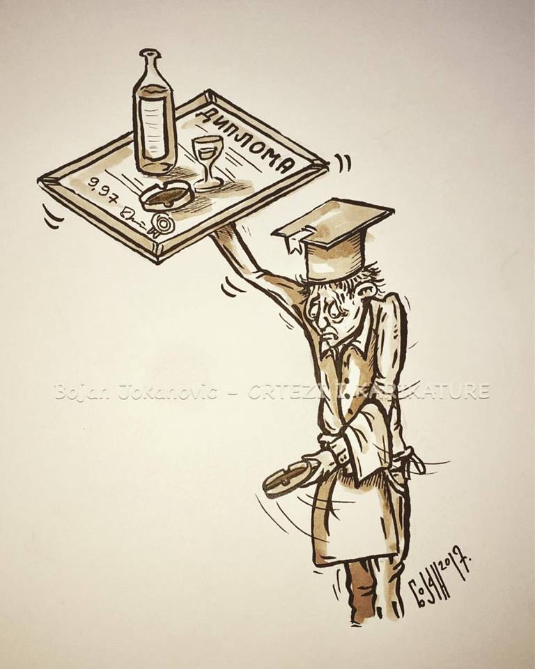 Karikatura: Bojan Jokanović sep 13, 2017 Karikatura dana: Diploma Karikatura: Bojan Jokanović ključne rečiKarikatura danaKarikature Bojana Jokanovića FacebookTwitterEmailViberReddItWhatsAppTelegramPrintPinterestTumblrLinkedinMixVKDiggLINENaver Facebook Prethodni tekstЈУНАЦИ АПРИЛСКОГ РАТА: Откривањe спомен – обележја године „мајору Драгољубу Ј. Кргушићу”Sledeći tekstDnevna doza aforizma Bojan JokanovićRođen 2. maja 1985. godine u Tuzli, živi u Doboju. Diplomirani Teolog, radi kao vjeroučitelj. Bavi se crtanjem, sviranjem gitare…"satiričnim" temama iz svakodnevnog života, ne/kulture, obrazovanja, mentaliteta...Čovek pre svega. PROČITAJTE! Knjige Petar Pismestrović: Partija pokera – knjiga karikatura Petar Pismestrović - dec 4, 2025 Satatatira Karikatura dana Petar Pismestrović - avg 13, 2025 Satatatira Karikatura dana Petar Pismestrović - avg 13, 2025 Satatatira Balkanska žena Branka Vojinović Jegdić Branka Vojinović Jegdić - feb 7, 2017 Satatatira Karikatura dana Nikola Dragaš - dec 6, 2018 Vesti Južnji predao meč Bojana Pudar - feb 27, 2014 Fotografija Fotografija dana Goran Protić - okt 27, 2018 Fotografija Fotografija dana: Stari Most Jovan Pavlović - apr 5, 2017 Priključenija Adriana Vilagoš šampionka Evrope u bacanju koplja Zoran Todorović - jul 19, 2025 Pokazivač pokazuje Kad porastem biću… Mirko Babić Bojana Pudar - avg 3, 2014 Otvorena vrata Likovni rad dana: Neobično biće Jovanka Ignjatović - maj 4, 2015 Satatatira Aforizmično – Emir Bajrović Emir Bajrović - dec 1, 2019 Zanimljivosti GEOMETRIJA ROMANA (poezija Pjesnikovih Bjelina) Nermin Delić - okt 31, 2015 Otvorena vrata Propaganda savremenog doba: Spoznajne mizerije Nemanja Andrić - feb 3, 2016 Vesti MILI DUELI: Pročitajte pravila Drugog kruga! Nermin Delić - jul 30, 2015