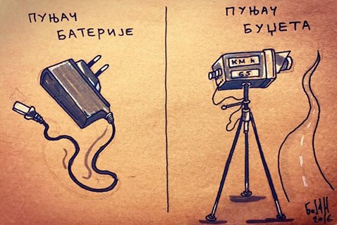 Karikatura: Bojan Jokanović okt 19, 2016 Karikatura dana: Dva punjača Karikatura: Bojan Jokanović ključne rečiBojan JokanovićDva punjačaKarikatura dana FacebookTwitterEmailViberReddItWhatsAppTelegramPrintPinterestTumblrLinkedinMixVKDiggLINENaver Facebook Prethodni tekstFotografija danaSledeći tekstDnevna doza aforizma Bojan JokanovićRođen 2. maja 1985. godine u Tuzli, živi u Doboju. Diplomirani Teolog, radi kao vjeroučitelj. Bavi se crtanjem, sviranjem gitare…"satiričnim" temama iz svakodnevnog života, ne/kulture, obrazovanja, mentaliteta...Čovek pre svega. PROČITAJTE! Knjige Petar Pismestrović: Partija pokera – knjiga karikatura Petar Pismestrović - dec 4, 2025 Satatatira Karikatura dana Petar Pismestrović - avg 13, 2025 Satatatira Karikatura dana Petar Pismestrović - avg 13, 2025 Magazin Kako do električnog automobila u Srbiji? Zoran Todorović - jan 26, 2019 Zanimljivosti Da li ste znali: Rat i mir Marija Pašalić - mar 5, 2015 Priključenija Vlada spremna da pruži sve garancije za Novaka Zoran Todorović - jan 8, 2022 Satatatira Karikatura dana Mladen Oljača - jun 21, 2019 Otvorena vrata Pisana priprema iz Muzičke kulture, Falila mi se prošena moma ton FA, treći razred Jovanka Ignjatović - apr 11, 2016 Zanimljivosti Da li ste znali: Egipat Marija Pašalić - maj 15, 2017 Satatatira Dnevna doza aforizma Jane Atanasov - sep 16, 2016 Mesečina Nebo sa pet zvezdica: Sneg Zoran Todorović - jun 17, 2025 Knjige Vijest dana: Čuveni američki Forbes pisao o Nerminu Deliću! Zoran Todorović - okt 19, 2018 Satatatira Dnevna doza aforizma Goran Ivanković - apr 5, 2018 Satatatira Izmišljotine Radmilo Mićković Radmilo Mićković - okt 1, 2018 Otvorena vrata Budite donator ili volonter Crvenog krsta Crveni krst Kragujevac - mar 16, 2021
