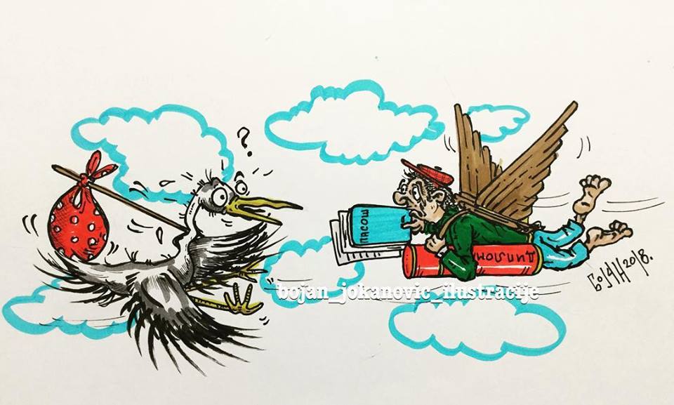 Karikatura: Bojan Jokanović jan 10, 2018 Karikatura dana: Ptice selice Karikatura: Bojan Jokanović ključne rečiKarikatura danaKarikature Bojana Jokanovića FacebookTwitterEmailViberReddItWhatsAppTelegramPrintPinterestTumblrLinkedinMixVKDiggLINENaver Facebook Prethodni tekstJerotić: Koja je uloga roditelja u izboru partneraSledeći tekstDnevna doza aforizma Bojan JokanovićRođen 2. maja 1985. godine u Tuzli, živi u Doboju. Diplomirani Teolog, radi kao vjeroučitelj. Bavi se crtanjem, sviranjem gitare…"satiričnim" temama iz svakodnevnog života, ne/kulture, obrazovanja, mentaliteta...Čovek pre svega. PROČITAJTE! Satatatira Karikatura dana Petar Pismestrović - dec 6, 2025 Knjige Petar Pismestrović: Partija pokera – knjiga karikatura Petar Pismestrović - dec 4, 2025 Satatatira Karikatura dana Petar Pismestrović - avg 13, 2025 Mesečina Labud N. Lončar: Kao ždral Labud Lončar - maj 27, 2021 Zanimljivosti Da li ste znali: 4/5 Marija Pašalić - jan 29, 2019 Knjige Konkurs „Satira festa 2018“ Zoran Todorović - avg 3, 2018 Otvorena vrata Američki matematičar Dejvid Loren: Srbija ima najpametniju omladinu na celom svetu Zoran Todorović - mar 22, 2018 Satatatira Dnevna doza aforizma Branka Milićević - jul 26, 2017 Zanimljivosti Da li ste znali: Konjske trke Marija Pašalić - maj 2, 2017 Mesečina U tvojoj zenici oka koren ljubavi Marina Milosavljević - sep 6, 2014 Fotografija Fotografija dana: Sve boje proleća Jovana Kuzmanović - apr 5, 2016 Otvorena vrata Princeza Katarina tradicionalno na Božić podelila paketiće u dečjim bolnicama Zoran Todorović - jan 9, 2018 Zanimljivosti Na današnji dan: 20. mart Bojana Pudar - mar 20, 2019 Satatatira Dnevna doza aforizma Predrag - Peđa Đakonović - sep 23, 2018 Otvorena vrata Likovni rad dana: Šumska kraljica Jovanka Ignjatović - jan 29, 2016