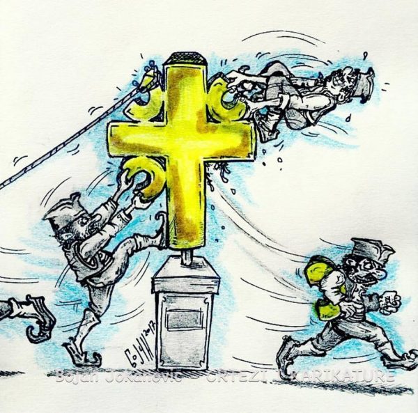 Karikatura: Bojan Jokanović okt 11, 2017 Karikatura dana: Samo sloga Srbina spasava Karikatura: Bojan Jokanović ključne rečiKarikatura danaKarikature Bojana Jokanovića FacebookTwitterEmailViberReddItWhatsAppTelegramPrintPinterestTumblrLinkedinMixVKDiggLINENaver Facebook Prethodni tekstSmirujete i hranite dete uz crtani? Prekinite odmah. Otkrivena veza između gledanja u ekran i autizmaSledeći tekstDnevna doza aforizma Bojan JokanovićRođen 2. maja 1985. godine u Tuzli, živi u Doboju. Diplomirani Teolog, radi kao vjeroučitelj. Bavi se crtanjem, sviranjem gitare…"satiričnim" temama iz svakodnevnog života, ne/kulture, obrazovanja, mentaliteta...Čovek pre svega. PROČITAJTE! Knjige Petar Pismestrović: Partija pokera – knjiga karikatura Petar Pismestrović - dec 4, 2025 Satatatira Karikatura dana Petar Pismestrović - avg 13, 2025 Satatatira Karikatura dana Petar Pismestrović - avg 13, 2025 Fotografija Fotografija dana Sandro Puncet - mar 22, 2018 Kultura Marko Spirić: Bujanovčani oduševljeni koncertom Renata Henca! Marko Spirić - jul 20, 2019 Magazin Marko Spirić: Mačka provela tri dana u ventilacionom otvoru bez hrane i vode! Marko Spirić - sep 19, 2017 Strip OBAVEŠTENJE SALONA STRIPA Zoran Todorović - jun 5, 2019 Mesečina Sanja Trninić: Novogodišnje književno veče Sanja Trninić - jun 11, 2021 Zanimljivosti Misao dana Prvoslavka Marković - nov 21, 2017 Fotografija Fotografija dana Dragana Trajković - dec 24, 2018 Satatatira Karikatura dana: Maršruta Zoran Todorović - feb 2, 2021 Magazin žika ranković: crvenperka Žika Ranković - nov 25, 2016 Otvorena vrata Dečji literarni konkurs “Probudimo uspavane reči” Sajt mojedete.info - jan 19, 2019 Fotografija Fotografija dana: Na salašu Jovana Kuzmanović - maj 5, 2015 Magazin Recept: Kolač sa makom Bojana Pudar - dec 6, 2014