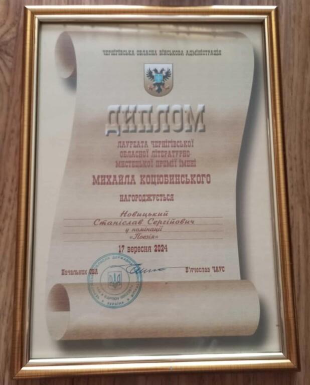 Laureat književnih nagrada Pavla Tičine, Mihaila Kocubinskog, Jurija Titova (Kijevska organizacija pisaca), iPantelejmona Kuliša, imena Leonida Glebova, Olesa Gončara, imena Leonida Narodovog, sveukrajinskog književnika nazvan po. nazvan po Tarasu Melničuku i mnogih drugih značajnih književnih nagrada.