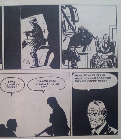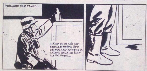 Ovaj strip nas može nagnati, manje ili više, da se zamislimo nad svrhom i načinima ratovanja, (ne)humanim obzirima među učesnicima i td., ali svakako, i bez posebno srceparajuće i filozofske linije, nosi jedan zanimljiv obrt i unutrašni doživljaj… Dakle, u trenutku kad je Drugi svetski rat na izmaku, uz očiglednu pobedu Saveznika (kako se navodi i u stripu, dejstva se fokusiraju na Normandiju, na područja slave velikana iz prethodnog rata) jedan nemački oficir, kao zarobljenik koji se vozi sa Amerikancima, relativno opušteno i pomalo revizionistički s enavraće na neke dramatične momente s početka rata…
