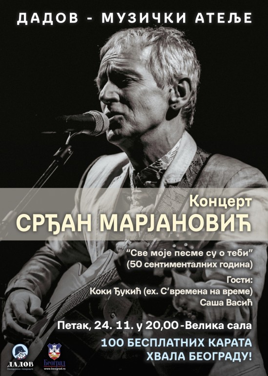 Beogradski kantautor Srđan Marjanović obeležava 50 godina svoje uspešne karijere koncertom u renoviranom pozorištu Dadov u petak 24.11.2023. Jedan je od retkih koji je tokom cele karijere ostao veran svom specifičnom stilu emotivne rok šansone. Objavio je 18 albuma, od toga jedan zlatni i dva srebrena. Njegove pesme su u svim antologijama YU rok muzike.