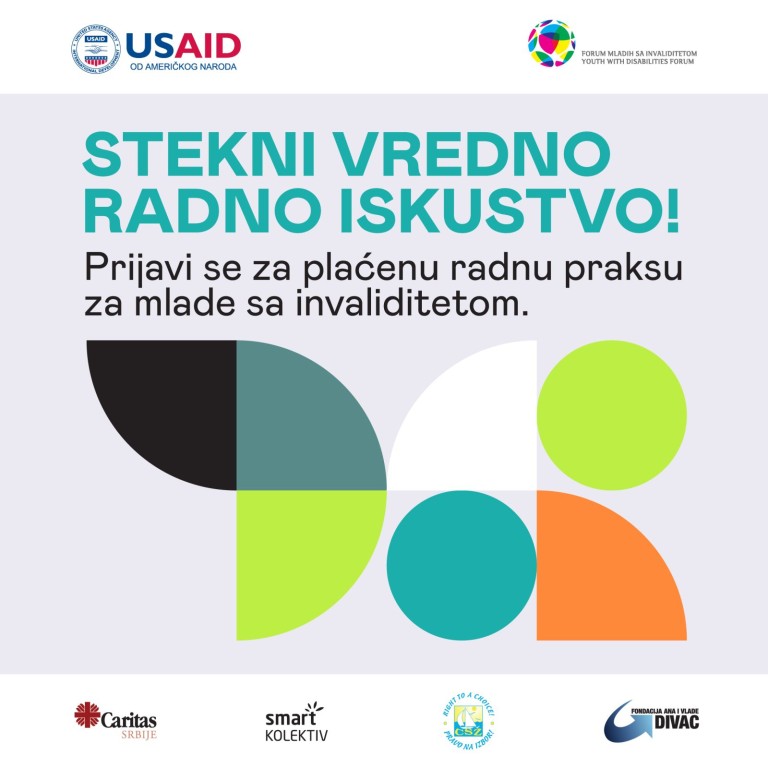 Podsećamo sve zainteresovane mlade sa invaliditetom sa teritorije Beograda, Novog Sada, Niša, Subotice, Zrenjanina i Šapca da se prijave na konkurs za PRAKSU PO MERI koji je otvoren do 25. januara 2024. godine.