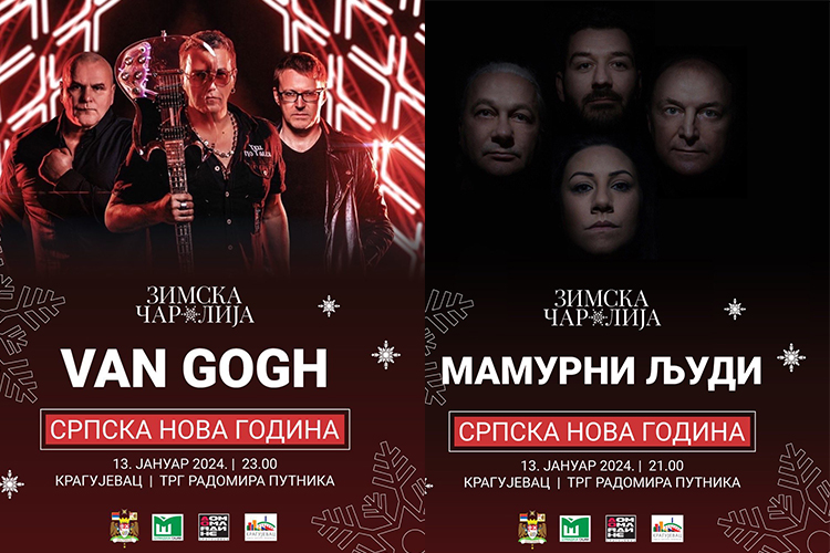 U organizaciji Doma omladine u 21 sat na Trgu Radomira Putnika nastupiće kragujevački pop-rok bend Mamurni ljudi, dok će od 23 sata nastupiti grupa Van Gog uz čije će hitove Kragujevčani dočekati srpsku Novu godinu.