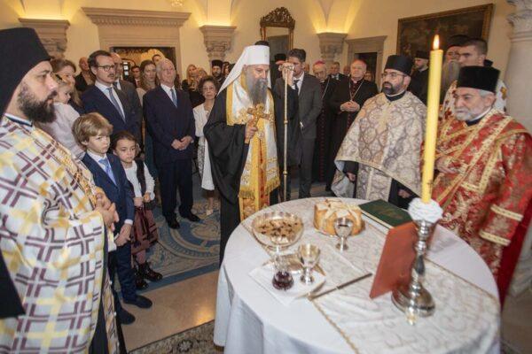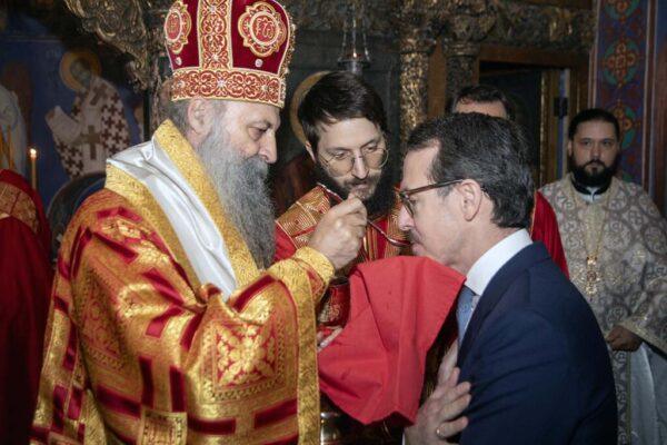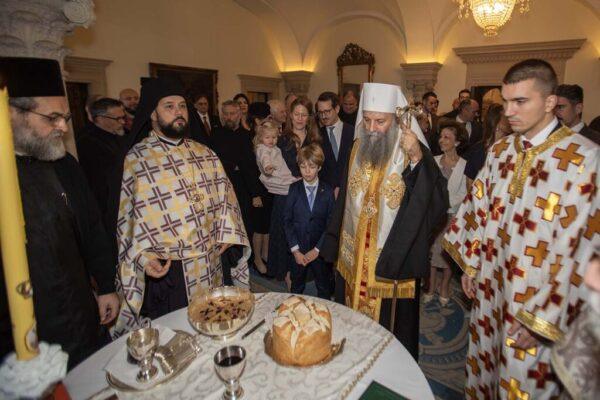 U svojoj besedi održanoj nakon sečenja kolača, Njegova Svetost Patrijarh srpski Porfirije je rekao: „Da Gospod podari međusobno razumevanje, jedinstvo unutar doma vašega, jer će to biti primer za ugled svima nama, ali i obaveza koju namećete svima nama. Jer imati Kraljevsku porodicu je luksuz, i mnogi narodi nemaju Kraljevsku porodicu, a pogotovu je nemaju iz svoga roda.Pa neki izmišljaju Kraljevske loze u svojim narodima, a neki bi platili ne zna se koliko blaga i bogatstva da je nekako stvore. Danas smo se sabrali da zajedno sa vama proslavimo slavu, da se zajedno sa vama radujemo i Bogu molimo, da Bog da jedinstvo, razumevanje i slogu našem rodu.“