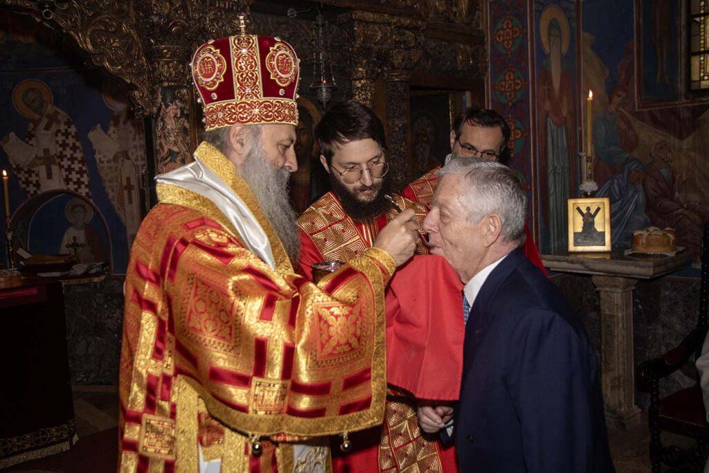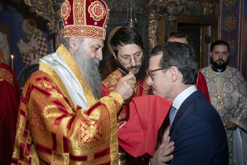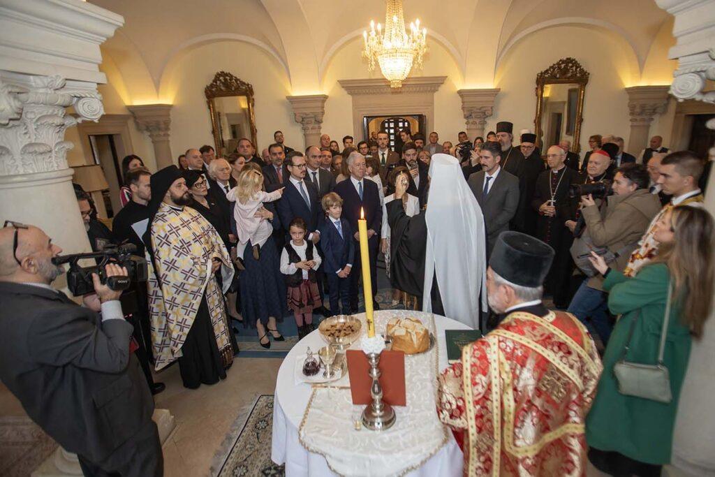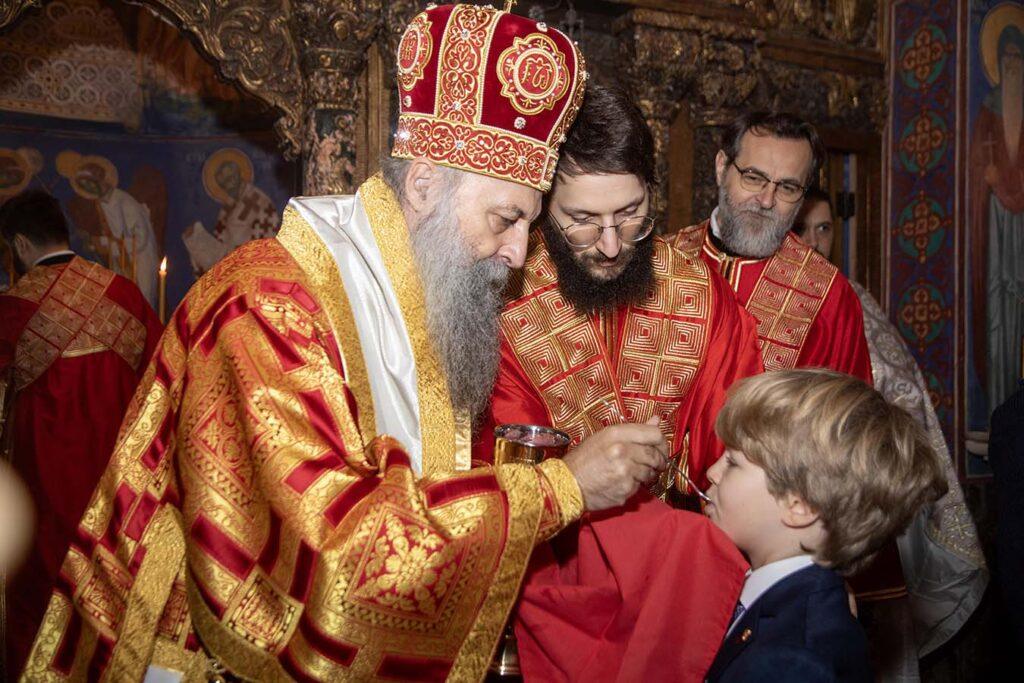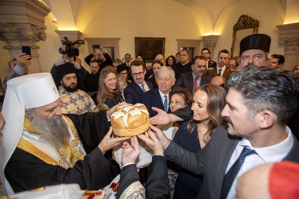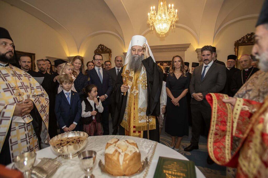 U svojoj besedi održanoj nakon sečenja kolača, Njegova Svetost Patrijarh srpski Porfirije je rekao: „Da Gospod podari međusobno razumevanje, jedinstvo unutar doma vašega, jer će to biti primer za ugled svima nama, ali i obaveza koju namećete svima nama. Jer imati Kraljevsku porodicu je luksuz, i mnogi narodi nemaju Kraljevsku porodicu, a pogotovu je nemaju iz svoga roda.Pa neki izmišljaju Kraljevske loze u svojim narodima, a neki bi platili ne zna se koliko blaga i bogatstva da je nekako stvore. Danas smo se sabrali da zajedno sa vama proslavimo slavu, da se zajedno sa vama radujemo i Bogu molimo, da Bog da jedinstvo, razumevanje i slogu našem rodu.“
