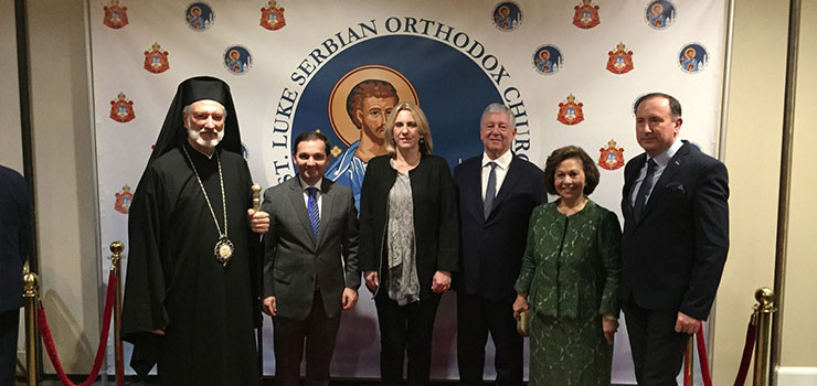 Potomak, Merilend, SAD, 9. februar 2018 – Njihova Kraljevska Visočanstva Prestolonaslednik Aleksandar i Princeza Katarina, zajedno sa Njegovim Preosveštenstvom Episkopom istočnoameričkim Irinejom, prisustvovali su dobrotvornoj večeri u Potomaku u Merilendu, na kojoj su prikupljena sredstva za srpsku pravoslavnu crkvu Sveti Luka u tom gradu.