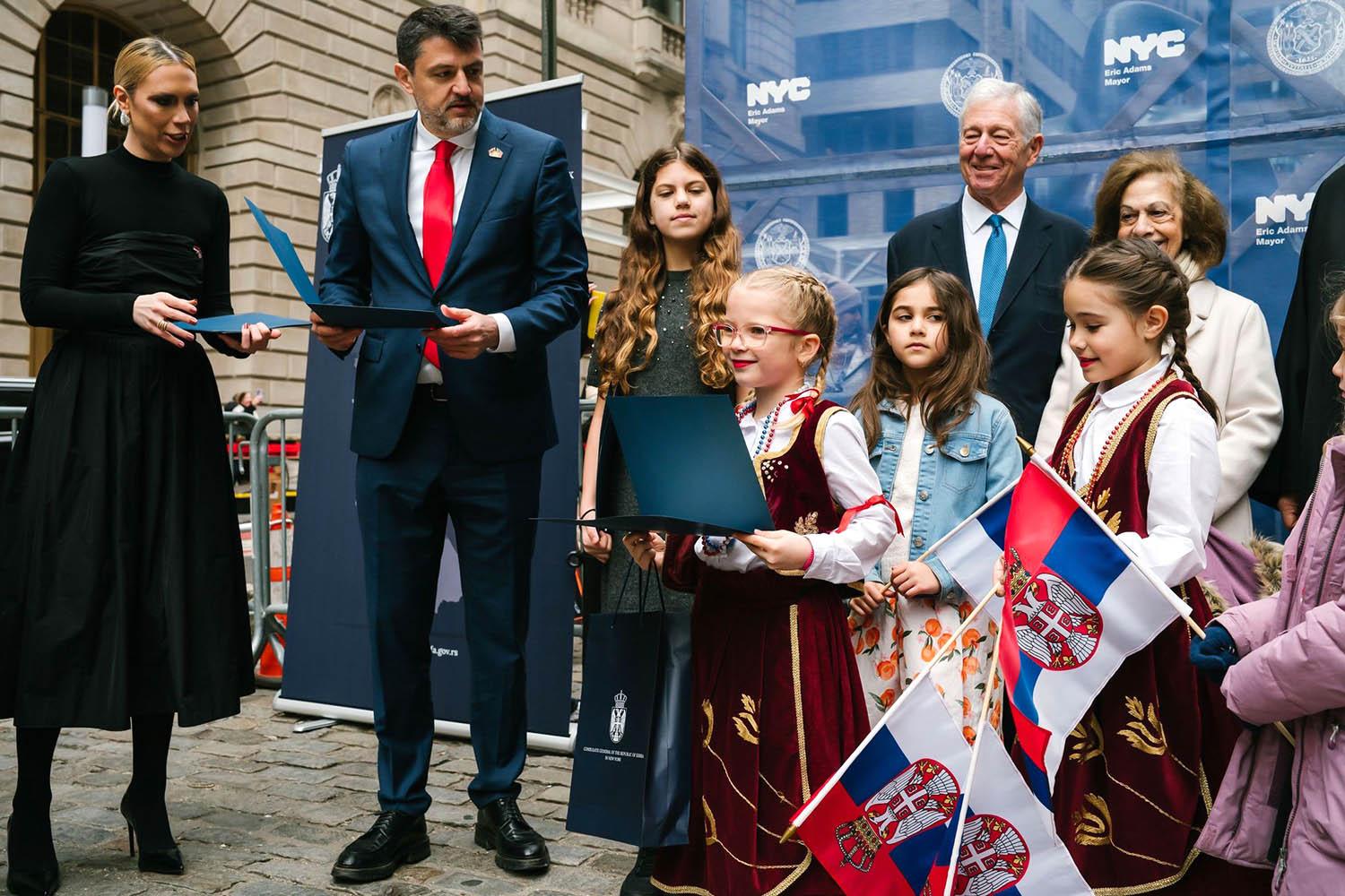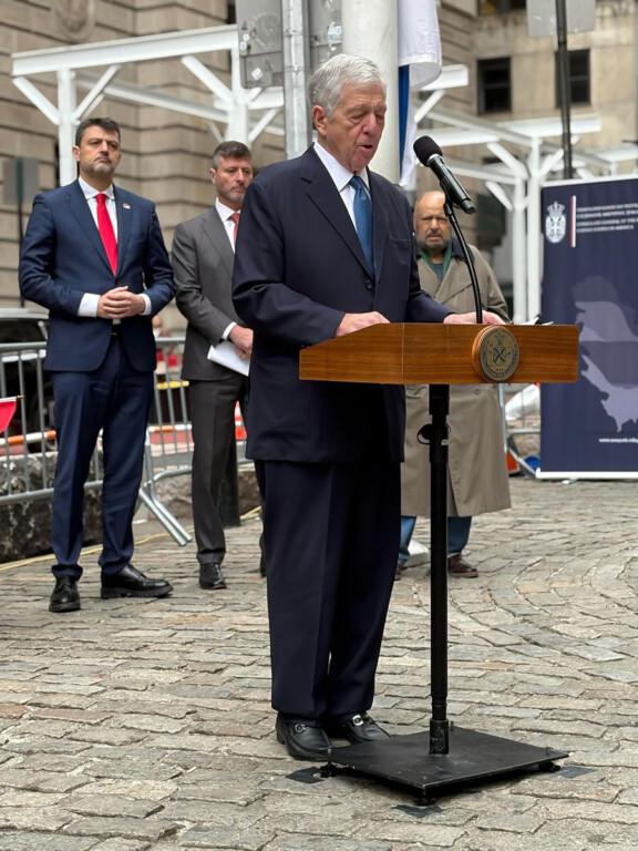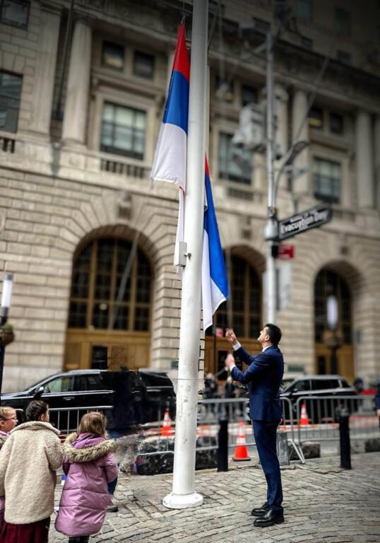 Nakon zvaničnih obraćanja, komesar Merlmestain u ime gradonačelnika, svečano je uručio proklamaciju generalnom konzulu Srbije, zvanično potvrđujući proglašenje 15. februara za Dan srpsko-američkog nasleđa u Njujorku. U proklamaciji, gradonačelnik Adams je naglasio: „Kao najraznovrsniji globalni grad u zemlji, veoma je važno da nastavimo. Ovo podizanje zastave predstavlja priliku da odamo počast Srbima u Njujorku i njihovim stalnim naporima da ojačaju pet gradskih opština Njujorka. Zajedno, nastavićemo da radimo na tome da Njujork ostane inkluzivan i prosperitetan centar mogućnosti za sve.“