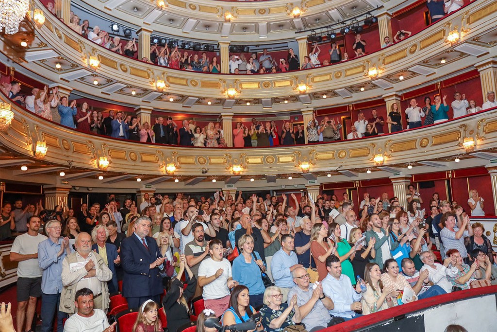 Beograd, 23. jun 2022. – NJ.К.V. Prestolonaslednik Aleksandar i Princeza Кatarina prisustvovali su juče premijeri novog umetničkog programa Ansambla „Venac” iz Prištine, sa privremenim sedištem u Gračanici, u Narodnom pozorištu u Beogradu, pod nazivom „700 – Venac igra u slavu 700 godina manastira Gračanice“.