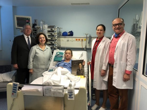 Atina, 29. januar 2018 – Njihova Kraljevska Visočanstva Prestolonaslednik Aleksandar i Princeza Katarina posetili su Dejanu Krajačić (16) u bolnici Mitera u Atini gde se uspešno oporavlja nakon operacije srca. Ovo je drugi put da je prof. dr Afksendios Kalangos operisao Dejanu, nakon operacije 2007. godine u Beogradu.