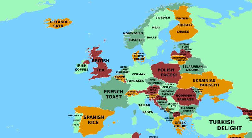 Kulinarska mapa sveta predstavlja najpopularniju hranu u svakoj državi. Rezultati predstavljeni na mapi dobijeni su na osnovu podataka iz Google search predloga.