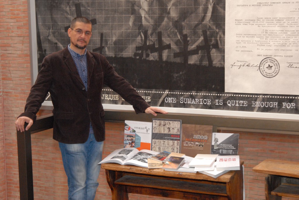 „Нањинг или Јужна престоница је једна од четири престонице и културна претоница Кине. Сарадња је успостављена разменом мејлова и као одраз воље да сарадњу продубимо ми смо њима послали пакет књига са издањима Спомен парка Крагујевачки октобар. Одмах су нам узвратили пославши нам 13 књига и 2 публикације на кинеском и енглеском језику. Из њих смо увидели на који начин они третирају тај злочин у визуелном и наративном смислу. Пре неколико месеци код нас је дошла делегација из Пекинга: новинара, кустос Музеја из Нањинга али и Тијен Зен координатор невладине организације између наша два народа. Господин Зенг је понудио да проширимо сарадњу као градови страдалници и зато што имамо сличне музеје. Договорили смо поља сарадње, између осталог и расправу о вредностима мира, како долази до оваквих злочина у рату и коренима зла! Размена публикација је нека врста нашег универзалног језика који користимо у визуелацији приче о злочину. У току идуће године очекујемо да ћемо озваничити ову сарадњу потписивањем Протокола јер већ постојеи културна сарадњанашега града и Кине и ми постајемо место на којем на неки начин Кина инвестира“, рекао нам је Марко Терзић, кустос и историчар Музеја 21. октобар.