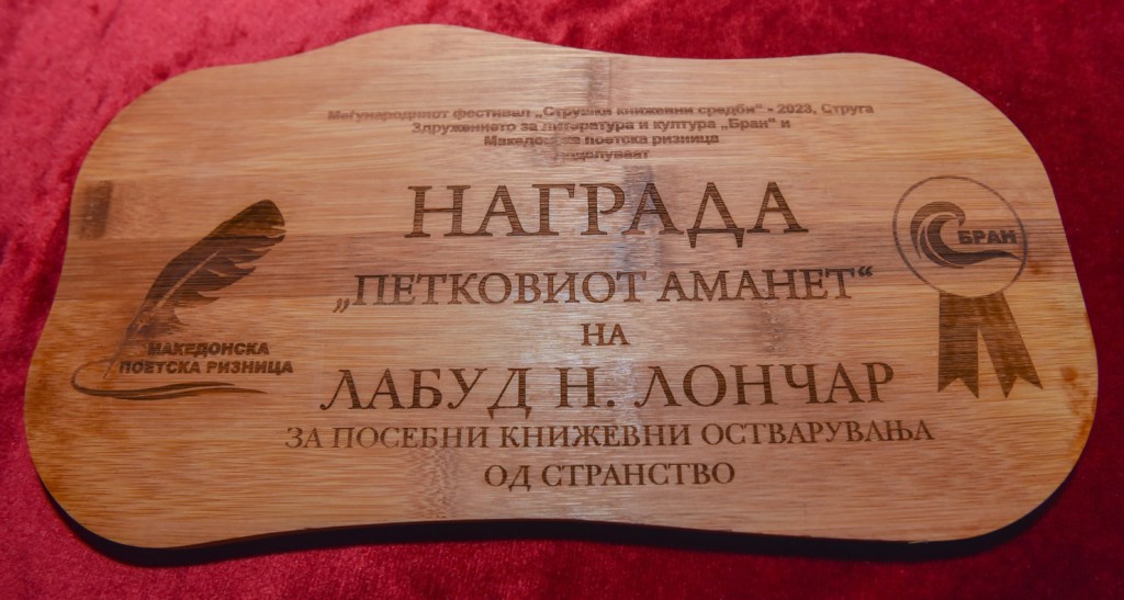 Na 11. Međunarodnom festivalu „Struški književni susreti“ dobitnik nagrade „Petkov amanet“ za posebna književna ostvarenja kao najbolji strani književnik za 2023. godinu je Labud N. Lončar, književnik, osnivač i predsjednik Međunarodnog udruženja književnih stvaralaca i umjetnika Nekazano, iz Bara.