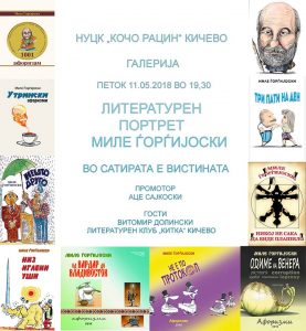 U organizaciji NUCK Kočo Racin – Kičevo organizovan je literaturni portret makedonskog satiričara Mileta Đorđioskog. O njegovom stvaralaštvu govorili su promoter, profesor Ace Sajkoski, kao i gost večeri, makedonski satiričar Vitomir Dolinski.