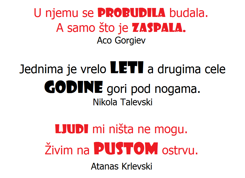 avg 16, 2017 Made IN Makedonija FacebookTwitterEmailViberReddItWhatsAppTelegramPrintPinterestTumblrLinkedinMixVKDiggLINENaver Facebook Prethodni tekstLikovni rad dana: Soba mojih snovaSledeći tekstMaja Grujić: Moja borba sa teškom depresijom Made in MacedoniaUrednici rubrike Vitomir Dolinski i Deana Sailović PROČITAJTE! Knjige Petar Pismestrović: Partija pokera – knjiga karikatura Petar Pismestrović - dec 4, 2025 Satatatira Karikatura dana Petar Pismestrović - avg 13, 2025 Satatatira Karikatura dana Petar Pismestrović - avg 13, 2025 Mesečina O drugom životu u napaćenoj zemlji Admir Džibrić - jul 23, 2015 Zanimljivosti Vic dana: Pismo roditeljima Đorđe Todorović - feb 25, 2019 Atelje Atelje Dina Devića Dino Dević - okt 7, 2018 Priključenija Veštačka inteligencija i mašinsko učenje omogućavaju zaposlenima u IT sektoru da iskuse prednosti proaktivnog održavanja Julijana Vincan - dec 14, 2018 Muzika Sve o pesmi „Padaj silo i nepravdo“ /VIDEO/ Zoran Todorović - feb 1, 2021 Satatatira Poranio Milorad: Oh, Kaća Zoran Todorović - avg 8, 2025 Priključenija Košarka: Srbija, Hrvatska i Francuska putuju u Rio Uroš Selenić - jul 11, 2016 Zanimljivosti Misao dana Prvoslavka Marković - apr 16, 2019 Zanimljivosti Mozgalica nedelje (br. 146): Nebo Mihailo Todorović - jul 2, 2017 Fotografija Fotografija dana: Magnolija Jovana Kuzmanović - avg 15, 2017 Priključenija Košarka: Kraj sezone Uroš Selenić - jun 11, 2016 Mesečina Oran i Anja, 2. deo: Strahovi i strašitelj Zoran Todorović - dec 9, 2024
