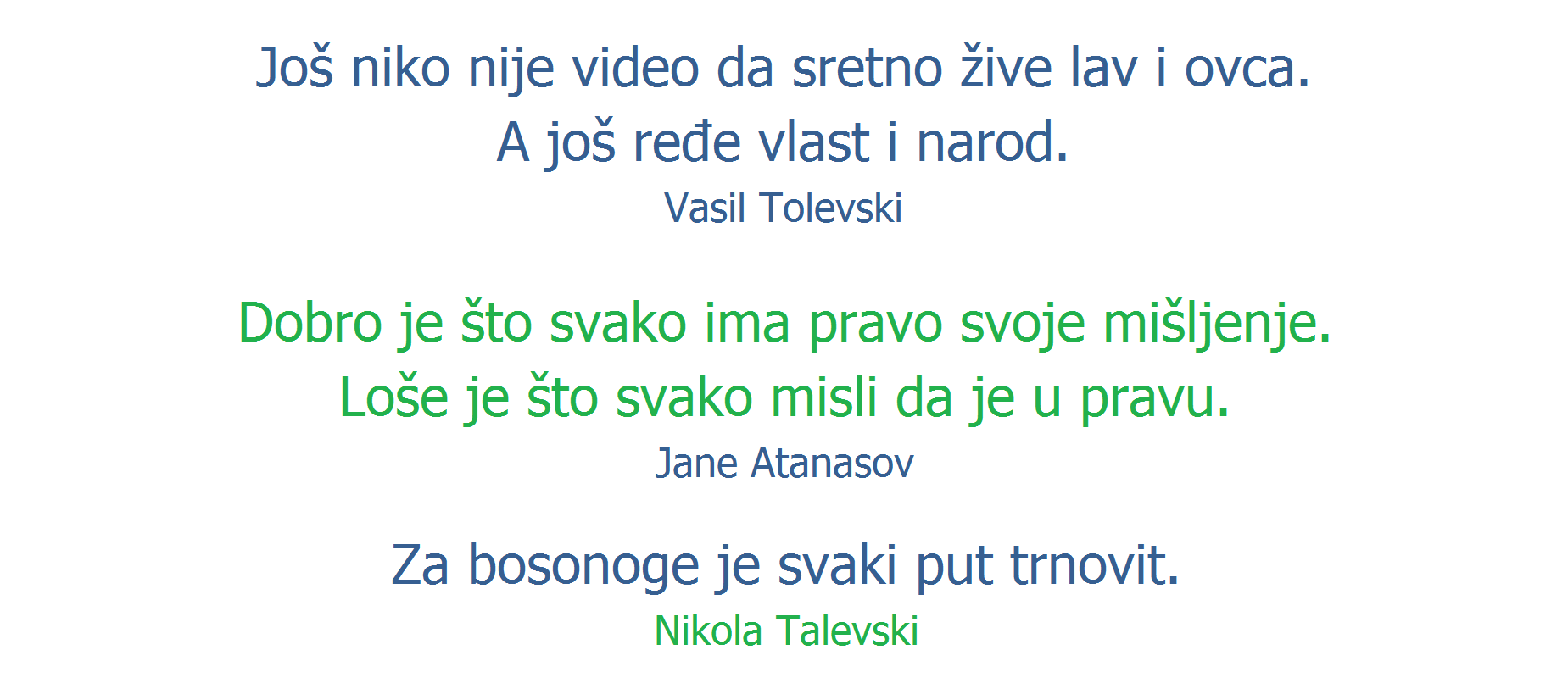 sep 20, 2017 Made IN Makedonija FacebookTwitterEmailViberReddItWhatsAppTelegramPrintPinterestTumblrLinkedinMixVKDiggLINENaver Facebook Prethodni tekstLikovni rad dana: Moja drugaricaSledeći tekstZdravlje i lepota: Povratite svoju LEPOTU pomoću 5:2 metode! Made in MacedoniaUrednici rubrike Vitomir Dolinski i Deana Sailović PROČITAJTE! Satatatira Karikatura dana Petar Pismestrović - dec 6, 2025 Knjige Petar Pismestrović: Partija pokera – knjiga karikatura Petar Pismestrović - dec 4, 2025 Satatatira Karikatura dana Petar Pismestrović - avg 13, 2025 Mesečina Tanja Radivojević: Koga to žene biraju? Tanja Radivojević - nov 19, 2020 Satatatira Dnevna doza aforizma Mitar Đerić - maj 1, 2018 Otvorena vrata Sveska Dimitrija Janićijevića Zoran Todorović - feb 25, 2018 Otvorena vrata Dragi lik mog detinjstva Zoran Todorović - jun 29, 2014 Magazin Recept: Medeni kolač Bojana Pudar - okt 1, 2014 Zanimljivosti Vladimir Aleksić – Prvi Srbin koji je poleteo na letelici sopstvene konstrukcije Zoran Todorović - okt 17, 2018 Satatatira Dnevna doza aforizma Predrag - Peđa Đakonović - sep 23, 2018 Priključenija Otvoreno igralište za decu u Srbobranu Zoran Todorović - apr 11, 2017 Magazin AmalžanKitchen je najpoznatija srpska kuhinja na svetu – nećete verovati u kojim uslovima ovi momci kuvaju Zoran Todorović - nov 23, 2017 Zanimljivosti Kup Srbije u planinskom biciklizmu „Borački krš” Miloš Ignjatović - apr 7, 2023 Magazin Savska obala šetalište ili brodogradilište i luka Miroslav Lj. Ranković - jun 9, 2016 Atelje Atelje Keti Radevske Keti Radevska - maj 9, 2018