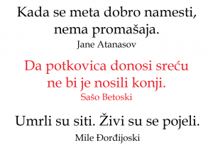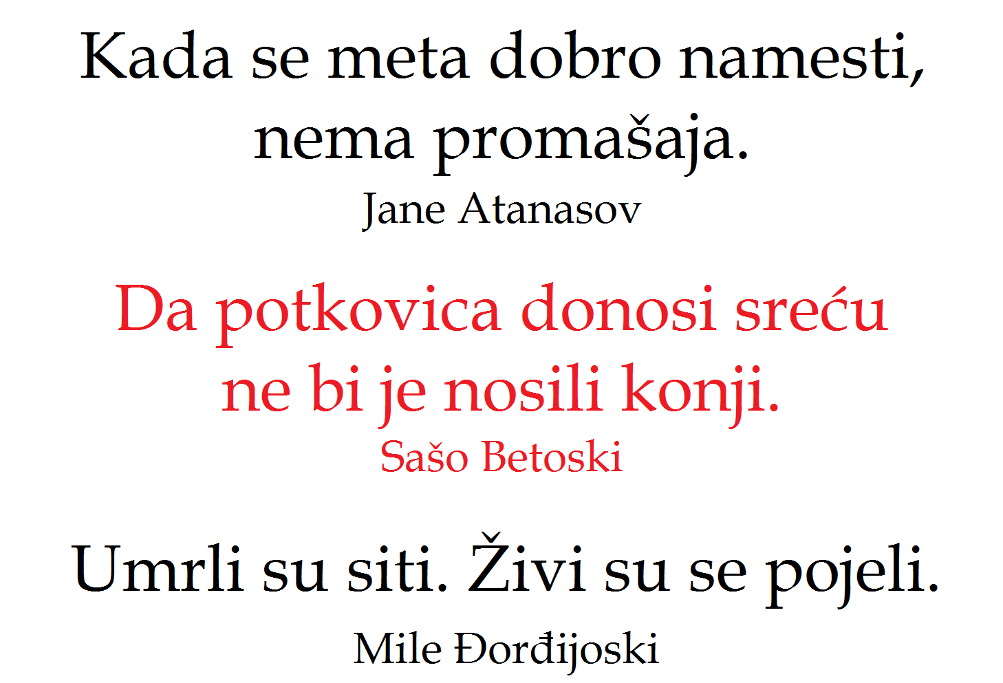 jan 3, 2018 Made IN Makedonija ključne rečiMade in. Makedonija FacebookTwitterEmailViberReddItWhatsAppTelegramPrintPinterestTumblrLinkedinMixVKDiggLINENaver Facebook Prethodni tekstAtelje Keti RadevskeSledeći tekstGordana Maksimović: DIVNU I INSPIRATIVNU GODINU VAM ŽELIM Made in MacedoniaUrednici rubrike Vitomir Dolinski i Deana Sailović PROČITAJTE! Satatatira Karikatura dana Petar Pismestrović - dec 6, 2025 Knjige Petar Pismestrović: Partija pokera – knjiga karikatura Petar Pismestrović - dec 4, 2025 Satatatira Karikatura dana Petar Pismestrović - avg 13, 2025 Mesečina Krug – Helena Himel Helena Himel - feb 9, 2017 Zanimljivosti Laku noć Đorđe Todorović - nov 10, 2014 Muzika Veče za pamćenje: Ana Bekuta oduševila posetioce na Danima Vranja Marko Spirić - avg 31, 2024 Zanimljivosti Tvit dana Kristina Raković - dec 28, 2014 Zanimljivosti Vic nedelje: Preporuka Đorđe Todorović - dec 16, 2018 Atelje Atelje Luke Cakića Luka Cakić - avg 10, 2017 Zanimljivosti Da li ste znali: Serijska mlada Marija Pašalić - nov 19, 2018 Satatatira Karikatura dana Milenko Kosanović - feb 5, 2019 Mesečina Zašto me ne voli tvoj tata Luka Markota - dec 26, 2017 Zanimljivosti Da li ste znali: Pamćenje Marija Pašalić - okt 18, 2017 Knjige MILOŠ RISTIĆ i njegovo književno stvaralaštvo UDRUŽENjE BALKANSKIH UMETNIKA - feb 5, 2015 Zanimljivosti Tvit dana Kristina Raković - nov 14, 2014