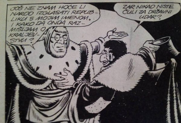 Inače, već smo objasnili kako je Ministar finansija kadar da sedi na dve, pa i na tri stolice, te on kao službenik Republike spremno čeka, uputstva i priprema teren za povratak kralja. Njegova uloga u ovom slučaju i nije tako presudna, ali svakako se dosta okoristio i u poslednjim danima republike, te svejedno je napravio haos (sa stradanjem vojnika i propašću državnog blaga) a Veliki sveštenik je ovog puta glavni mutikaša – u Republici su organizovani opšti slobodni izbor, a uz njegovu pomoć Maxmagnus je uspeo da sprovede pompeznu i atraktivnu kampanju za svoju kandidaturu (Ministar je zapravo i za kralja izdejstvovao pravo kandidovanja, koji je pritom naravno smatran autsajderom) – Uz primamljiva obećanja, javno prikazivanje zanosne princeze i svaljivanje krivice za probleme u zemlji na režim koji je bio na snazi u međuvremenu, i kasnije i uz najavu da će krivci za takvo stanje biti kažnjeni…. (baš pri tome, u jednom od poslednjih kadrova, vide se Četvorooki i Markus kako se tiiho i zabrinut povlače sa scene ) Naš monarh se legitimno i bez prolivene kapi krvi vrača na svoj položaj! I opet sve iznova, konsolidacija i prikupljanje dažbina, uz uzgrednu ali vrlo značajnu opasku jednog čoveka iz naroda, kako se menjaju svirači i instrumenti, ali muzika nikada!