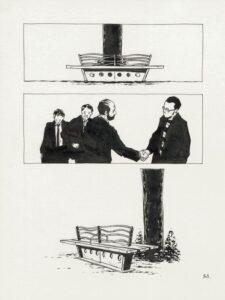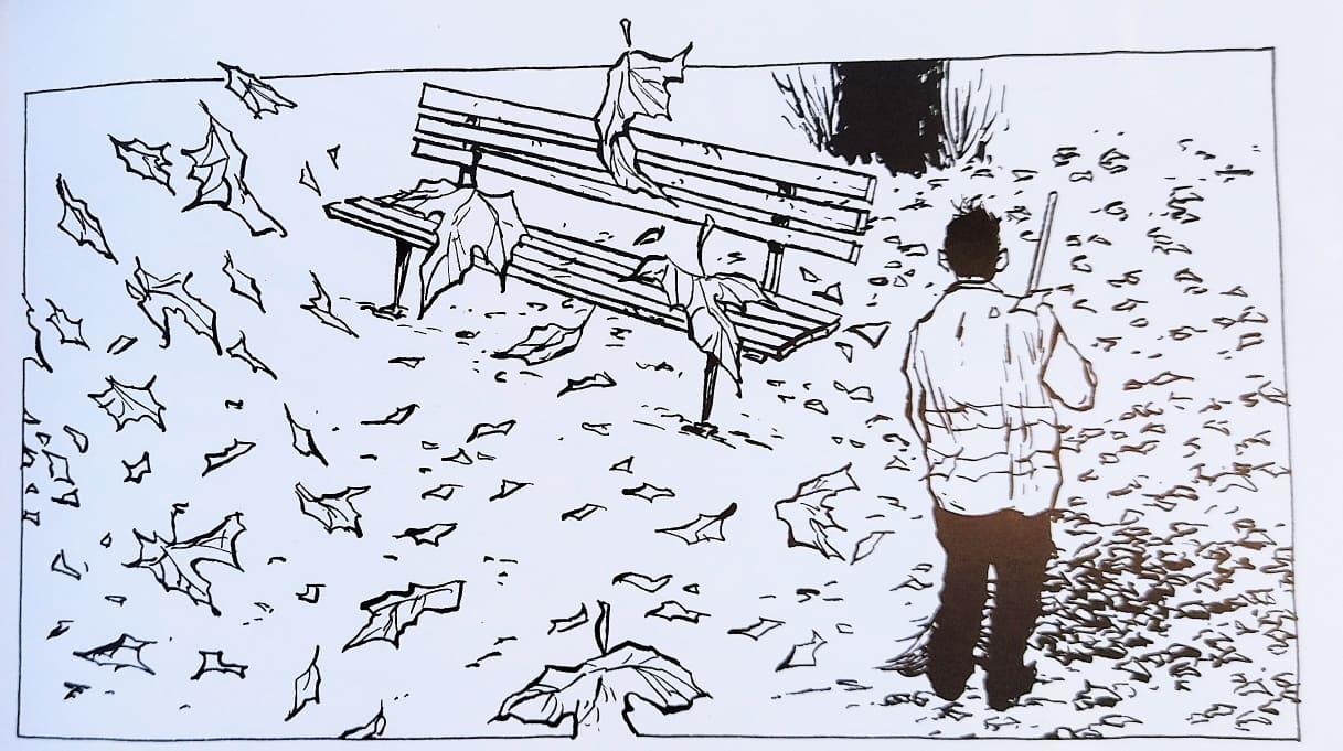 Već na osnovu letimičnog prelistavanja lako ćemo zaključiti da je glavni junak ove priče klupa – obična parkovska klupa… Ovaj grafički rad/ novela Kristofa Šabutea (Čistilište, Pun mesec, Veštice, I princeze idu u ćošak) je tehnički samo priča u slikama, ali svakako mnogo kazuje. I ovde je došla do izražaja upečatljiva upotreba sugestivnih detalja, pokreta lica i gestova, pojava ljudi u kretanju…