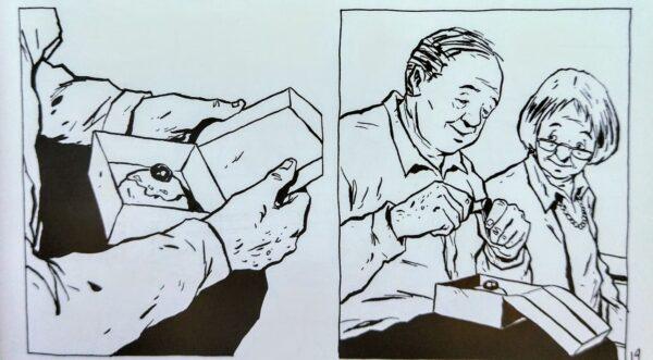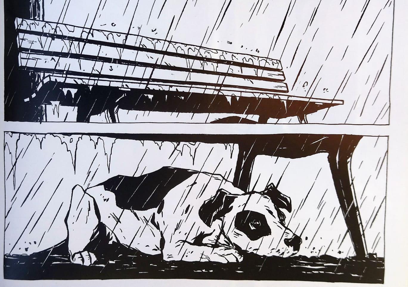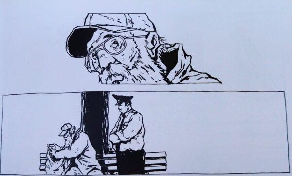 A ona stara dobra klupa? Vidimo je u promenljivom svetlu nekog skladišta, zatim kako čeka svoju šansu na buvljaku – ovo pominjem pošto je u nekoj varijaciji svetla, a zatim i truda oko detalja (realistično) zaista došlo do izražaja neko grafičko zalaganje autora. E sad, da nekako zaokružimo priču – priču, koja naravno ne nosi neki kompaktan sled zbivanja, ali da vidimo gde se zatvara neki krug – Ko je kupio klupu? Mladi čovek koji sa svojom suprugom prepoznaje na njoj jedan urez kao znak ljubavi iz klinačkih dana, a njihov sinčić simbolično uz nju nalazi oslonac da napravi prve samostalne korake!