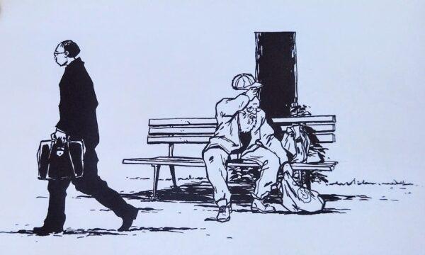 – Jedna od pojava koje se najviše ponavljaju: Beskućnik koji u više navrata pokušava da se razbaškari na klupi, pri čemu ga ometa lokalni policajac, pozornik – sve dok mu ne dospe vreme za penziju, a onda, uz neku nejasnu mrzovolju, uzme da ga brani od mladog kolege!