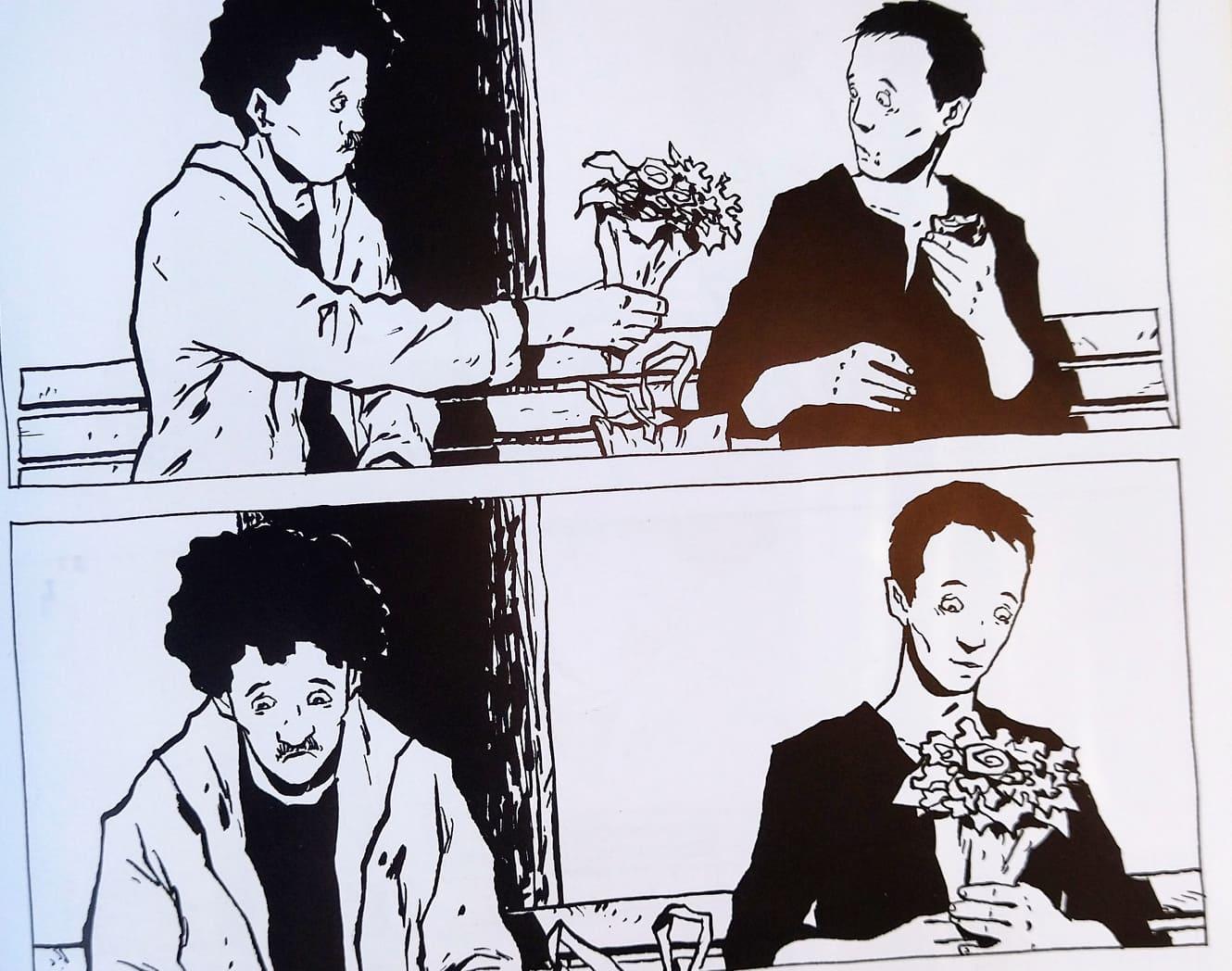 – Mlađi čovek koji sa cvećem uzalud čeka nesuđenu draganu, ali se u vidu utehe utehe kraj njega pojavi žena koja je očito u nekoj svojoj fazi oporavka (sudeći porastu kose ispod marame, nakon terapije) i, izgleda da će ljubavna priča između njih upaliti.