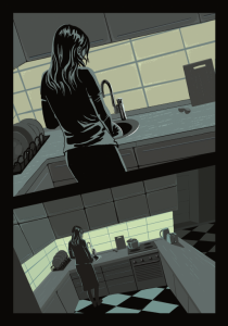 Ta ista sinteza se vidi i u crtežu Vidojevićevee. Toliko je scena gde jedan događaj prelazi u drugi dok se nadovezuje na treći, čak i kada ta tri događaja nemaju nikakvo jedinstvo mesta, vremena i radnje. Malo je crtača koji tako lepo mogu da eksperimentišu sa formom (Vanja Onirik Urukalo mi pada na pamet), i moram da naglasim ovo „lepo“ – crteži Vidojevićeve su estetski neverovatni i maltene ne pripadaju u domenu stripa. Nisu revolucionarni, ali su i te kako daleko iznad proseka.