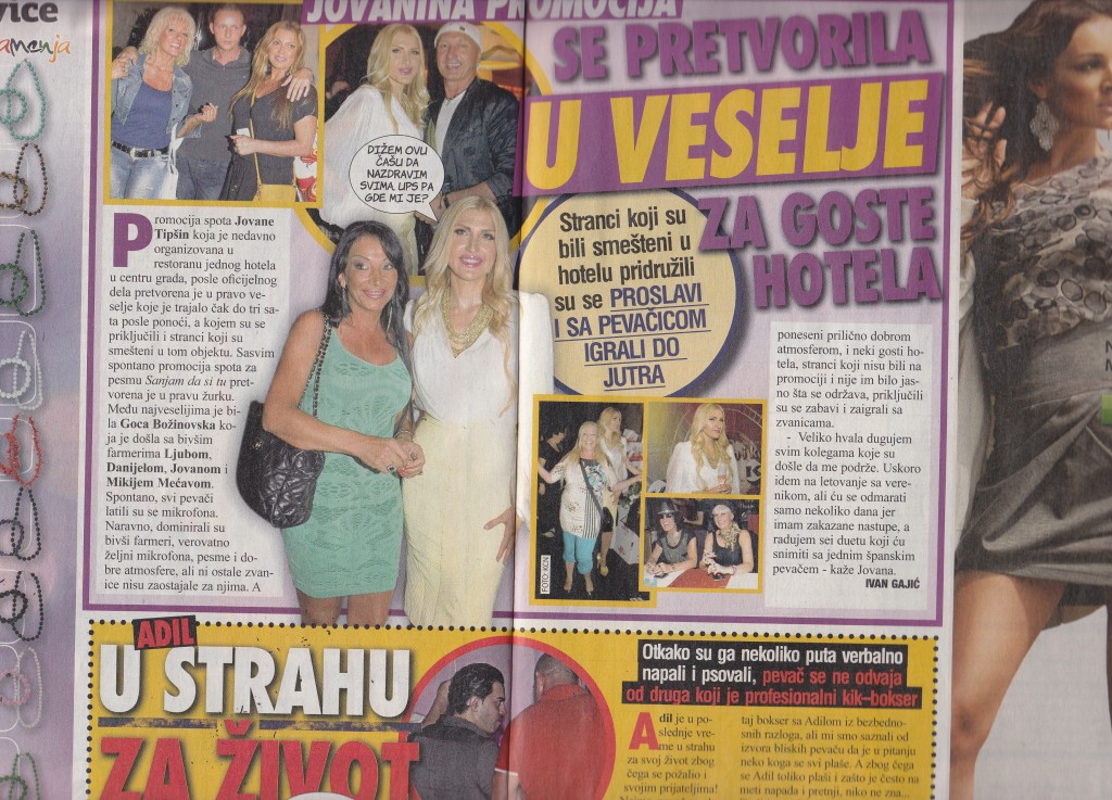 Jovana Tipšin: Na estradi sam 22. godine, prvu ploču,kasetu i CD, snimila sam za PGP-RTS 1994. godine. Nemam toliko slobodnog vremena tako da se retko družim sa kolegama. Nisam ni sa kim u svađi, poštujem sve svoje kolege.