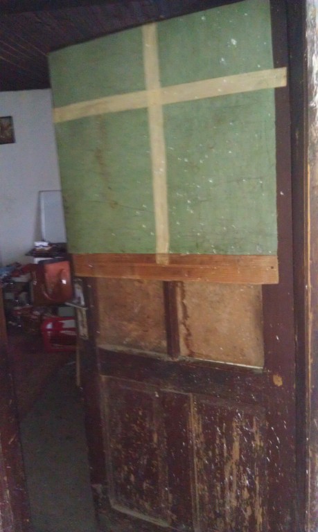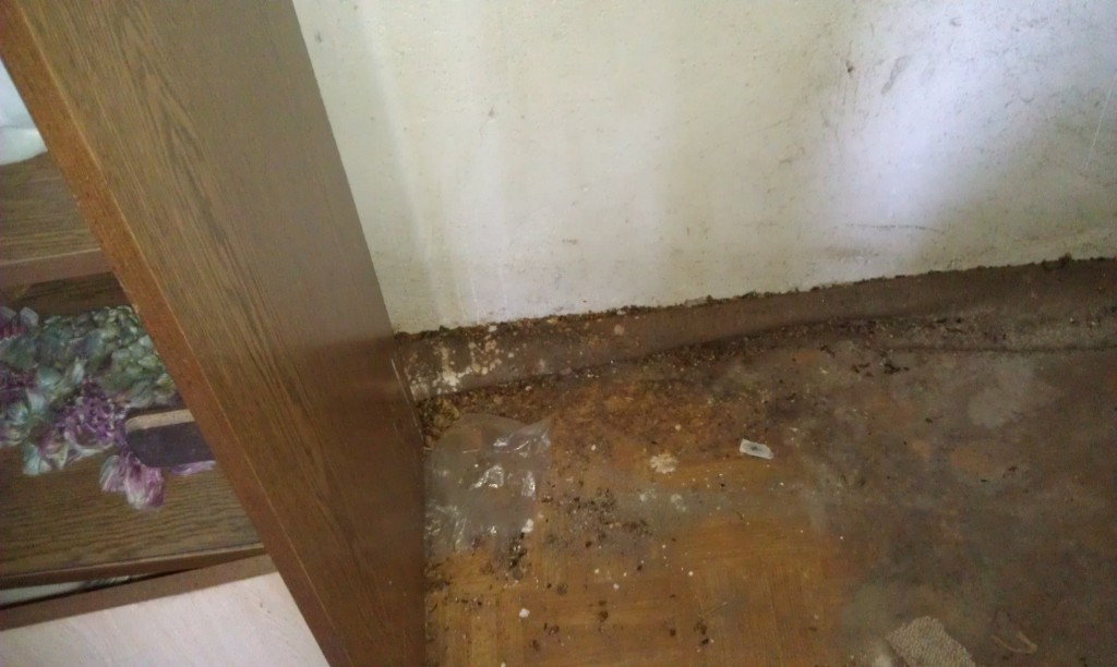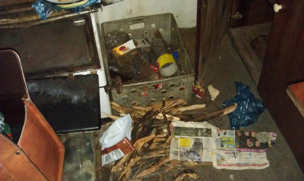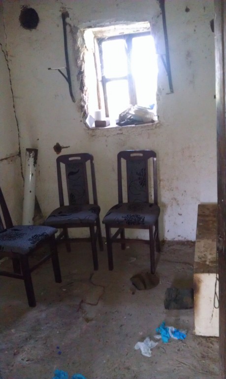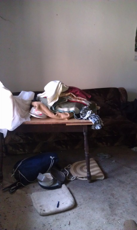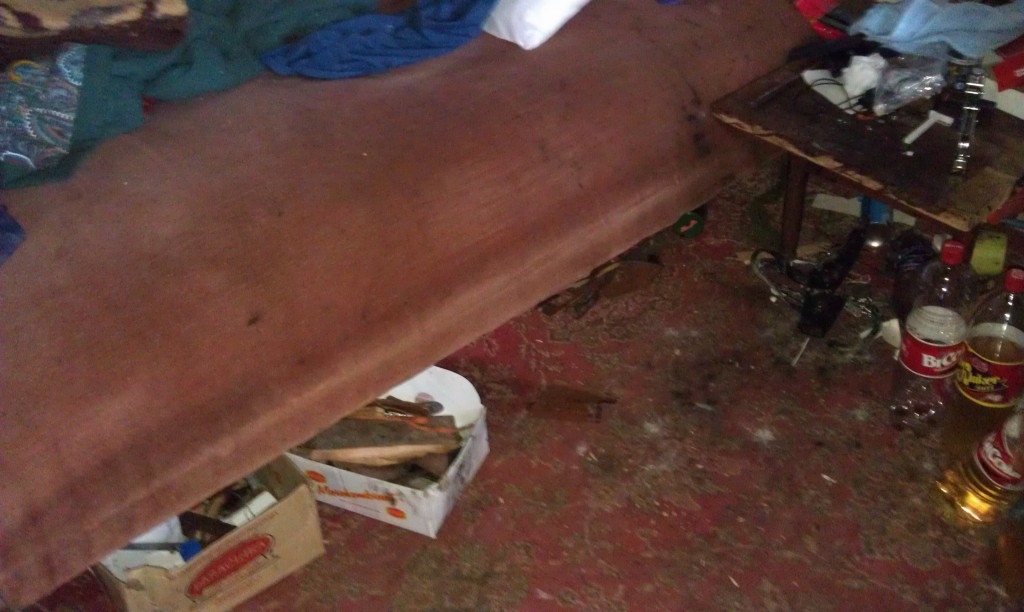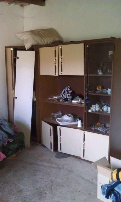 U trošnoj kući, krov koji prokišnjava, sa otvorenim tavanom od drvenih dasaka, dve sobe unutra televizor, krevet, regal i nešto od garderobe koju je dobio.