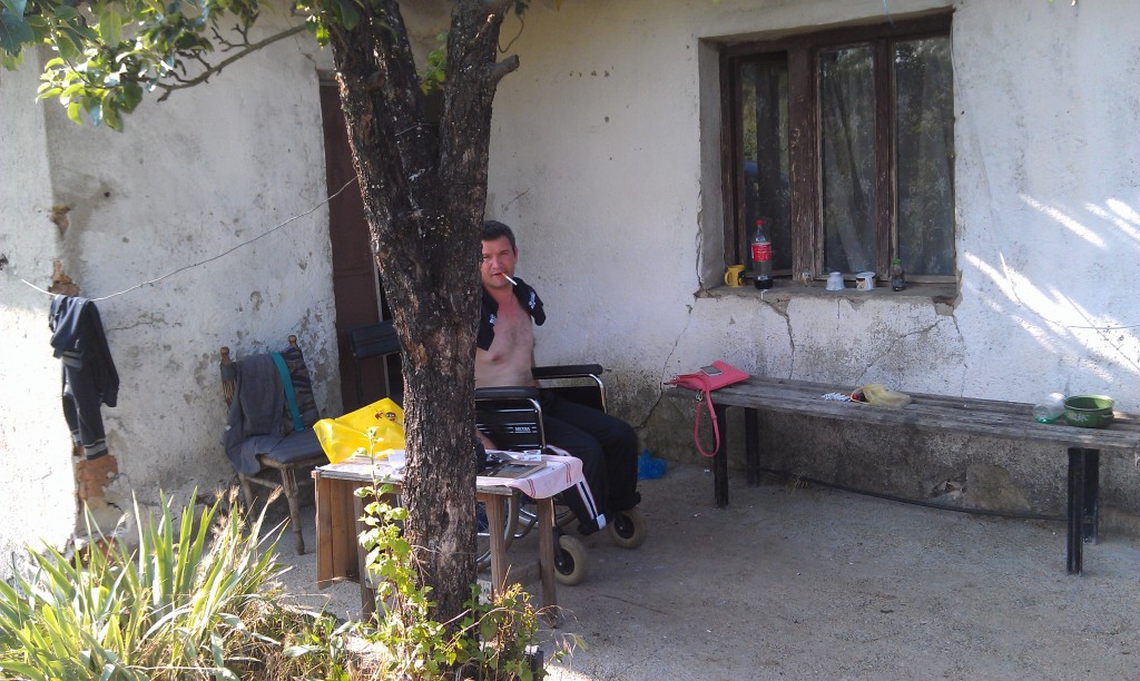 Nije korisnik socijalne pomoći, ni tuđe nege. Hranu dobija od komsija koji se uglavnom smiluju na njega. Najteže mu pada to što ne može sam ni do poljskog toaleta koji se nalazi iza kuće do same livade jer toaleta u kući nema.