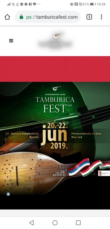 POŠTOVANI PRIJATELJI, OBAVEŠTAVAMO VAS da će, ovogodišnji, 12. po redu svetski „Tamburica fest 2019.“, na kojem će se takmičiti 12 orkestara iz osam zemalja, biti održan od 20. do 22. juna u centru Novog Sada i na Petrovaradinskoj tvrđavi.
