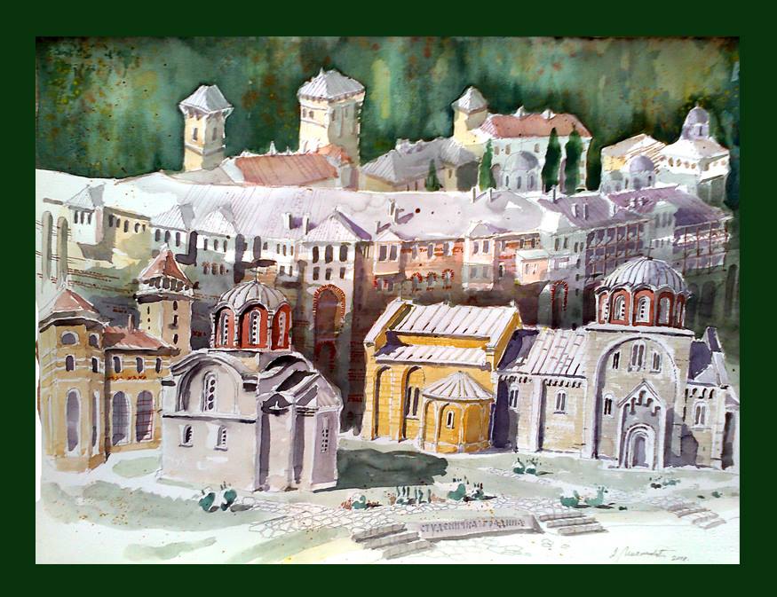 „STUDENIČKA GRADINA“, akvarel, 77/96 cm, 2018. Duško Milošević