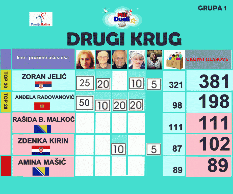 Drugi krug najpopularnijeg online poetskog takmičenja u regionu „Mili Dueli“ počeo je u subotu u 15:00 h i završio se za 24 sata pomalo neizvjesnim rezultatima koje svi nismo očekivali.