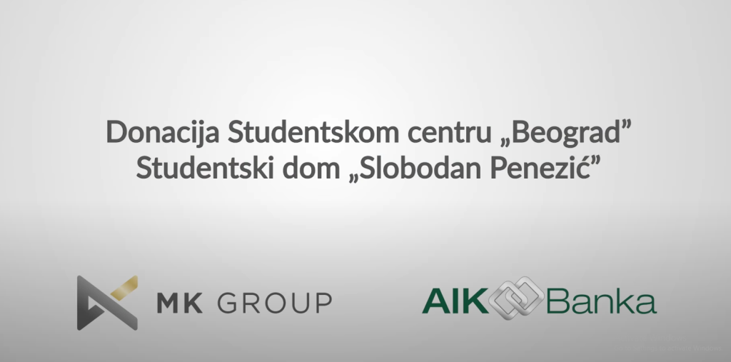 „MK Group“ i „AIK Banka“ potpisale su ugovor o donaciji 100.000 evra Studentskom centru „Beograd“, ustanovi koja u glavnom gradu pruža usluge smeštaja za 10.500 studenata u 14 studentskih domova.