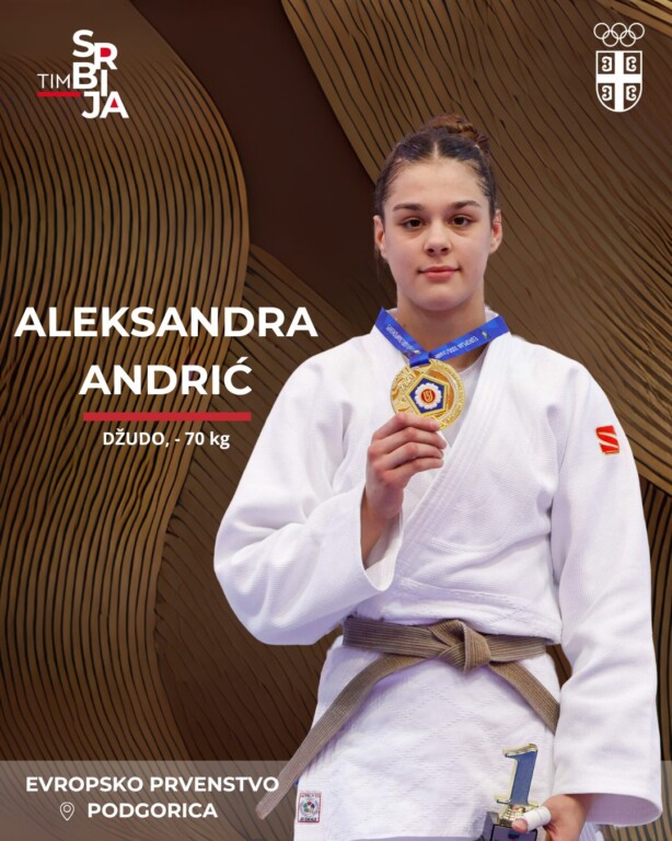 Reprezentativka Srbije u džudou Aleksandra Andrić osvojila je bronzanu medalju na Evropskom prvenstvu koje se održava u Podgorici. Aleksandra je u prvom kolu bila slobodna, dok je u drugom kolu u zlatnom poenu bacanjem za ipon pobedila Idu Erikson iz Švedske. Odličnu borbu nastavila je Aleksandra i u osmini finala, i ponovo u zlatnom poenu stigla do pobede, a ovog puta je bila bolja od Aleksandre Samardžić iz Bosne i Hercegovine. U meču četvrtfinala, Aleksandru je sačekala teška protivnica, Mari Iv Gahie iz Francuske, četvrta na svetu. Aleksandra je poražena od džudistkinje iz Francuske, ali je obezbedila prolaz u repasaž.