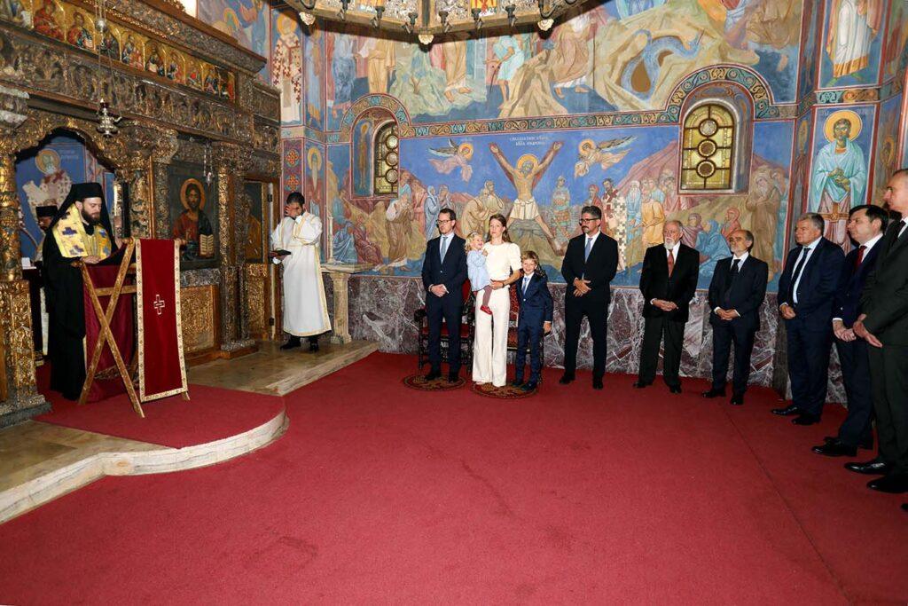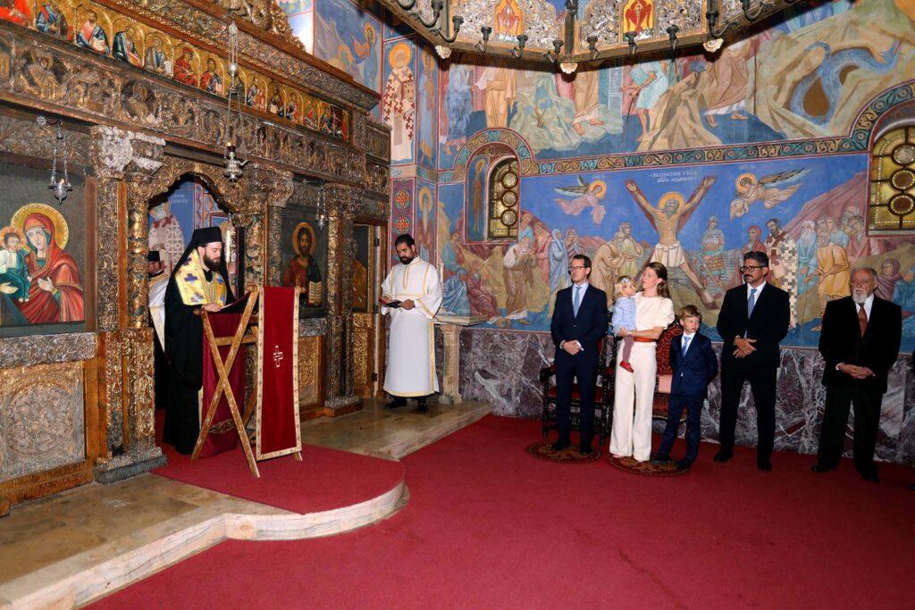 Službu je predvodio Njegovo Preosveštenstvo Episkop toplički G. Petar, vikarni Episkop Njegove Svetosti Patrijarha srpskog G. Porfirija, uz sasluženje oca Mihaila Rapajića, dvorskog sveštenika, i protođakona Stevana Rapajića, a prisustvovali su i Njihova Kraljevska Visočanstva Princeza Danica, Princ Stefan, Princeza Marija i Princ Aleksandar, kao i članovi Savetodavnih tela Krune. Nj.K.V. Prestolonaslednik Aleksandar i Nj.K.V. Princeza Katarina, zbog neizbežnih obaveza u inostranstvu, nisu mogli da prisustvuju, ali je Njegovo Kraljevsko Visočanstvo veoma zahvalan svojim sinovima, snahi i unucima, kao i prijateljima Kraljevske porodice, što su obeležili njegov rođendan na ovako prikladan način.