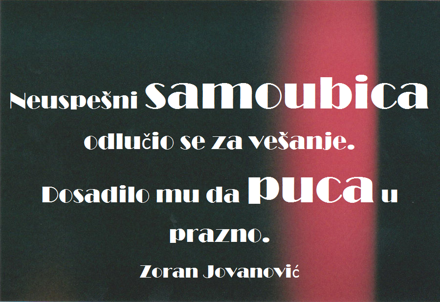 dec 5, 2018 Mućkalica Zoran Jovanović FacebookTwitterEmailViberReddItWhatsAppTelegramPrintPinterestTumblrLinkedinMixVKDiggLINENaver Facebook Prethodni tekstLabud N. Lončar: Iskapala…Sledeći tekstAforizam Janka R. Milenkovića Zoran M. JovanovićRođen 1969 god u Leskovcu. Magistar ekonomskih nauka, radi u Pošti. Milanov i Milenin tata. PROČITAJTE! Satatatira Karikatura dana Petar Pismestrović - dec 6, 2025 Knjige Petar Pismestrović: Partija pokera – knjiga karikatura Petar Pismestrović - dec 4, 2025 Satatatira Karikatura dana Petar Pismestrović - avg 13, 2025 Priključenija Novak u trećem kolu Majamija Zoran Todorović - mar 29, 2015 Magazin Marko Spirić: Energija 70-ih! Marko Spirić - sep 18, 2020 Otvorena vrata To se ne zaboravlja Zoran Todorović - maj 22, 2014 Kultura Pozorište za decu/Kragujevac/Ah, taj zmaj Pozorište za decu Kragujevac - jan 30, 2015 Zanimljivosti Za miran san i dobar dan: Zmajeva kugla 73. epizoda Đorđe Todorović - maj 6, 2016 Otvorena vrata Likovni rad dana: Marko Kraljević i Beg Kostadin Jovanka Ignjatović - apr 10, 2016 Zanimljivosti Za miran san i dobar dan: Kliford, veliki crveni pas (2) Đorđe Todorović - apr 4, 2017 Mesečina Marina Milosavljević: Dokaz ljubavi nije u rečima Marina Milosavljević - feb 2, 2019 Atelje Atelje: Čuvar uspomena (ulje na platnu, 35×45 cm) Ana Mutavdžić - jun 9, 2015 Satatatira Radna sveska iz poznavanja društva Simonida Banjeglav Nebojša Čandić - dec 31, 2017 Zanimljivosti Da li ste znali: Kikiriki Marija Pašalić - sep 28, 2015 Film Unapredjeni LoL heroj- Warwick Nikola Zebić - feb 10, 2017
