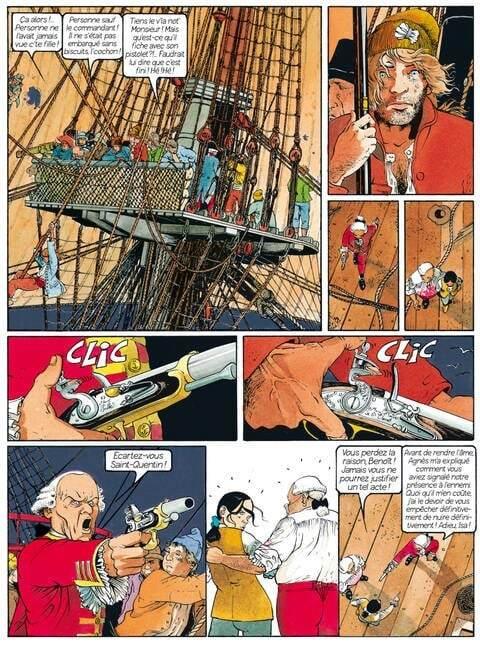 Ovaj rad je u Francuskoj najpre izlazio u izdanju kuće Glénat, zatim i Casterman, i 12 bis; Prvih pet albuma su izašla u razdoblju od 1979 do 1984, a kasnije su i u izdanju na srpskom sabrana u jedan tom (izdanje Čarobne knjige __ Stari kontinent) Prvi od albuma nosi naziv Devojka pod krmom (La Fille sous la dunette )