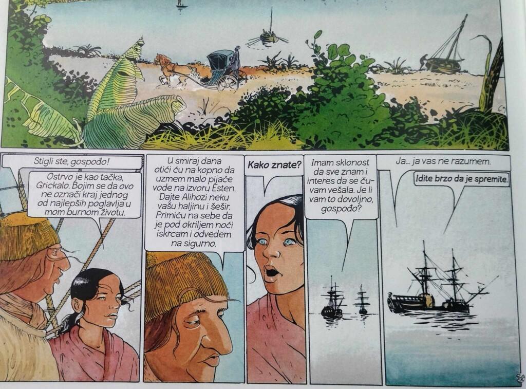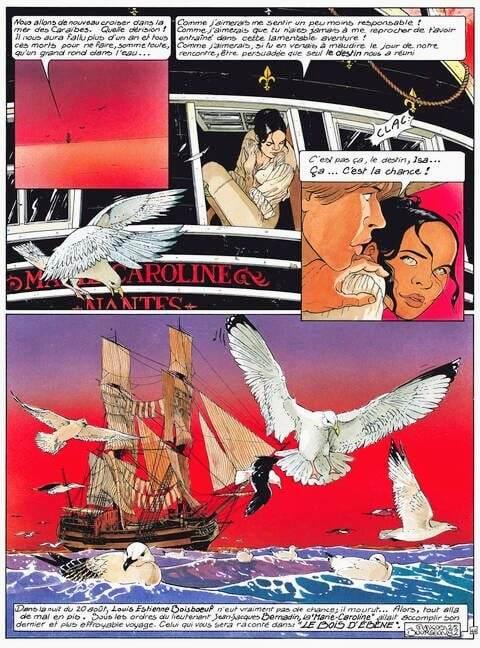 Ovaj strip je kompletno autorsko delo F. Buržona, rađeno korektno realistički, uz izvesnu stilizaciju, sa očiglednim trudom da se građa potkrepi proučavanjem brojnih istorijskih podataka i tehničkih detalja, pa se tako može naići i na par crteža koji predstavljaju neku šemu tadašnjih prekookeanskih brodova. Radnja u prvom planu počinje 1782,. dakle nekoliko godina pre velike francuske Revolucije, sa jednim osvrtom na Izino detinjstvo i zadevojčenje. Priča nosi poduhvate, akciju i napetost, ali prizori i dijalozi značajno navode na razna razmišljanja. Očigledno je u početku osnovni ambijent zbivanja brod (računajući i onaj engleski nasukani brod za zarobljenike) ali dosta toga se zbiva i na kopnu, stoga ne bih u tom prostoru isticao neku posebnu simboliku; neku specifičnost – da, neosporno valja uzeti u obzir… Brod sa svojom dinamikom kao pokretni objekat, sa okolnim rizicima, sa prostornim ograničenjima, sa stremljenjima, iskušenjima i prinuđenostima ljudi koji su na njemu i, naravno, hijerarhijskim ustrojstvom među njima – i to je jedan karakterističan mehanizam, jedan mikrosvet… Kroz celu pripovest imamo pokretanje značajnih pitanja o odnosu među ljudima, o odnosu među klasama, među rasama, a u pogledu pojedinca omožemo se uživeti u neke njihove težnje, u pitanja izdržljivosti i opstanka, dostojanstva, morala… A onda i pitanje (nezavidnog) položaja žene u to vreme, u kome posebno predstavlja snažan primer iskakanja iz nekih okvira, iako je u nekoj retrospektivi i ona bar dva puta prikazana kao žrtva višestruke muške požude i obesti!
