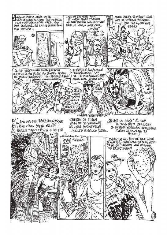 Valja početi od prvog navedenog. Toni Radev je relativno poznato ime srpskoj strip sceni. Pored rada u časopisima poput „Strip Pressinga“ i „Strip Manije“, kao i fanzinima a la „Patagonija“ i „Krpelj“, Toni je učestvovao i jednim stripom u albumu „Postelja od gloga“ Marka Stojanovića i Dejana Vujića (koji je takođe izašao u četvrtom broju „Strip Pressinga“), a ima i potpisan strip album „Max Debris: Ispovest pravog krivotvoritelja“ po scenariju Stojanovića i Đorđa Milosavljevića (izlazio u drugom broju časopisa „Bumerang“, kao i u delovima u „Politikinom zabavniku“). Sam rad na „Debrisu“ odmah pokazuje Tonijeve afinitete prema frankobelgijskom stripu, konkretno prema crtačkoj stilizaciji u „Spiruu i Fantaziju“ (crtači kao Žiže, Berk, itd.). U sklopu „Art booka“ vide se i primeri ovoga: tu je „Sveti Vinsent“ koji pozdravlja čitaoca na uvodnoj stranici stripa. To prate dodatne table u fazi skiciranja na stranama 6 i 7, uz humoristički strip „Moroni“ na strani 9 i pin-ap ilustraciju Maksa Debrisa na strani 11. Međutim, i pored ovih profesionalnih/komercijalnijih izleta u glavni tok – uz ovo valja dodati i pin-ap Macanovog „Sergej stripa“ na strani 8 – Radev briljira u nekonvencionalnom okruženju, i tu valja izdvojiti kratki strip na str. 5 i nešto duži strip „Mary“ na stranama 36-39. Oba su verovatno najnečitljivije i najzamršenije kreacije u sklopu ove knjige. Iako je prvi kudikamo lakši za praćenje, prvenstveno zbog nešto jasnijeg crteža i čitljivijih slova, značenje valja tražiti onda kada valja tražiti isto u filmovima Dejvida Linča – u prevodu, samo napred, imajte na umu da autor neće da se složi sa zaključkom. Jedina – ali nepremostiva – prepreka kod „Mary“ je s namerom loš rukopis pri upisu dijaloga. Priča funkcioniše kao lepa, bestrukturna ljubavna priča, doduše zbog autorovog izbora da se poigrava sa čitaocem pravo je pitanje da li je to i poenta stripa. No, Radev svejedno uspeva u intrigiranju čitaoca, hoće da ga navede da pita prava pitanja, da se udubi u strip.