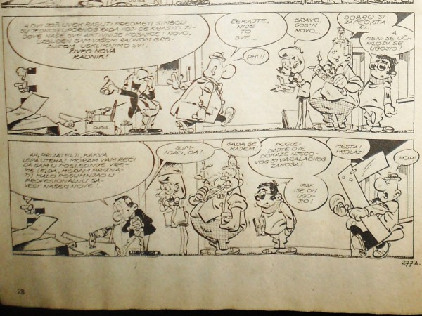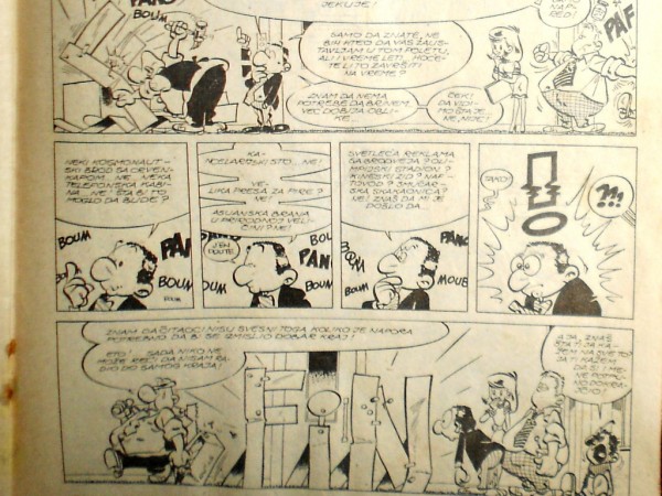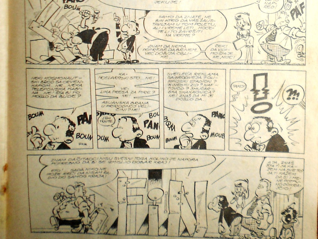 uglavnom ne oduzima mnogo vremena čitaocu, tj. strip-tabli (1-2 stranice), ovde predstavljamo jednu od zgoda starog znanca iz nekih ranijih izdanja, Ahila Petića – što je prilagođeno ime uglavnom poznato iz „Politikinog zabavnika“ i bliže je originalu Achille Talon, dok je u izdanju „Marketprinta“ iz nekih razloga korišćen naziv Nova, što i ovde figurira. Ovaj tip, u nekim srednjim godinama, i telesno i duhovno je pun sebe, a njegova sujetna priroda i želja da se istakne se nadograđuju raznim motivima koji se protežu od neke eruditske blagoglagoljivosti, do poletne marljivosti i raznih oblika nesebičnog aktivizma… Ovaj strip junak je čedo francusko-belgijskog autora poznatog kao Greg (Michel Regnier)
