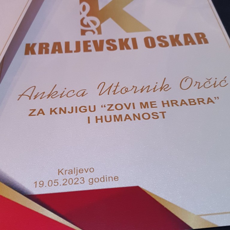 Ankica Utornik Orčić posle mnogo nagrada od „Dame Regiona“, „Naj žena XXI veka“, „Golub mira“, i ostalih u prepunoj sali hotela Turist je dobila još jednu prestižnu nagradu Kraljevski oskar za knjigu “ ZOVI ME HRABRA“ i humanitarni rad.