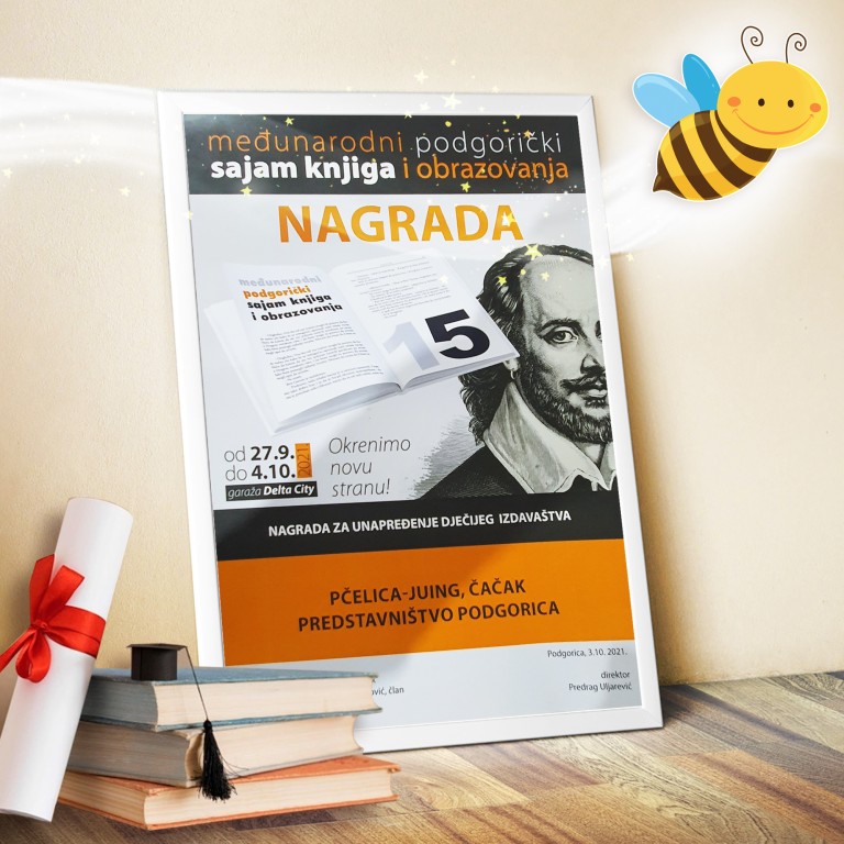 PČELICA IZDAVAŠTVO DOO i PČELICA – JUING, zvanično predstavništvo Pčelice za teritoriju Crne Gore, dobitnici su prestižne Nagrade za unapređenje dječijeg izdavaštva, koja je uručena 3. oktobra na Međunarodnom podgoričkom sajmu knjiga i obrazovanja.