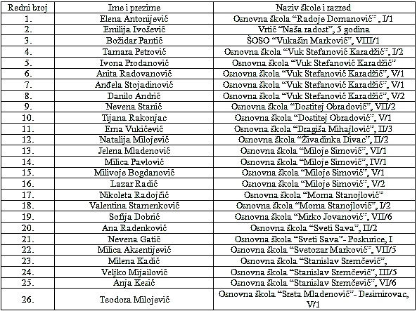 Najuspešniji i nagrađeni su sledeći učenici:
