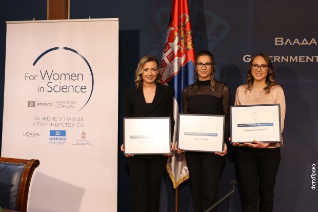 Na svečanoj ceremoniji, održanoj u Vladi Republike Srbije, najtalentovanijim mladim naučnicama su dodeljene stipendije u vrednosti od po 5 hiljada evra, namenjene realizaciju njihovih značajnih naučnih istraživanja iz oblasti molekularne biologije, hemije životne sredine i tehnologije prehrambenih proizvoda.