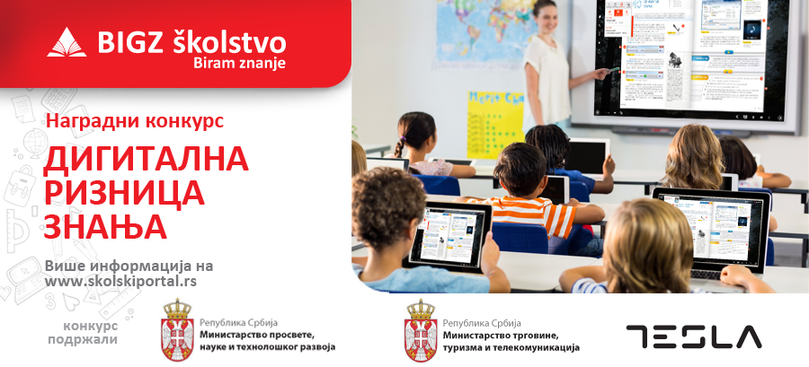 Izdavačka kuća BIGZ školstvo uz podršku Ministarstva prosvete, nauke tehnološkog razvoja, Ministarstva trgovine, turizma i telekomunikacija i kompanije Comtrade raspisala je nagradni konkurs „Digitalna riznica znanja”. Pravo učešća imaju učitelji i nastavnici svih osnovnih škola u Srbiji, a svoje radove mogu poslati do 1. aprila 2018. godine.
