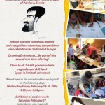 U Americi tj. u Čikagu sam proveo dve nedelje, tamo sam održao trodnevnu radionicu karikature u osnovnoj školi Akademiji Sveti Sava. Na radionici je bilo 15 polaznika, dece od 7 do 12 godina, a sama škola broji oko 60 đaka, u ovoj školi se nastava održava na srpskom i engleskom jeziku. Na radionici smo se bavili kreativnim razmišljanjem, portretnom karikaturom i stripom. Posle ovih radionica, takođe su interesovanje pokazala i srpska deca koja ne idu u ovu skolu, pa je radionica odrzana i za njih, i tu je bilo 20 polaznika. Pored radionica tamo sam imao i izložbu dece ilustracije koja je odrzana na donatorskoj večeri, gde se sakupljao novac za obnovu i saniranje manastira Presvete Bogorodice u Indiani. Specijalno sam za to donatorsko veče uradio seriju od tri karikature “ Srbin u Čiakagu“, i sve tri su prodate na aukciji, i novac je otisao kao pomoc za manastir, a meni je srce bilo puno sto sam mogao da pomognem.. Najvecu zahvalnost dugujem Svesteniku Radovanu Jakovljeviću koji je prepoznao to sto radim, i pozvao me da to podelim sa našom decom u Čikagu. U Čikagu obisao sam The Field Museum, The Art Institute, Park milenijum, Shedd Aquarium, Atlantic center. I Srpske svetinje: Hram Vasksenja Hristovog, Crkvu Sveti Sava i Manastir Gračanicu u Libertivilu, i Manastir Presvete Bogorodice u Indiani. Pored toga sto sam stekao prijatelja za ceo život, mislim na oca Radovana, i što sam video mnogo toga, družio se sa divnim ljudima, i što su reakcije dece na radionici bile vise nego pozitivne. Na mene su najveci utisak ostavila dva dečaka Andrej i Dusan. Od Andreja sam dobio pismo, koje nema cenu, gde on izražava svoju zahvalnost sto je naucio da crta, Dusan me je dirnuo, jer nije hteo da spava dok ga ne nacrtam, i njegov tata je morao da dođe po mene, i kada sma ga nacrtao on je pogledao gore ka Bogu i rekao: „Hvala ti za najbolji dan u zivotu“…