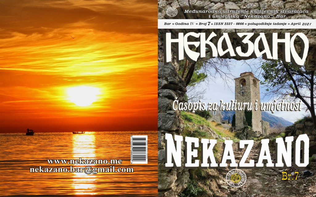 Na kraju – „Nadamo se da će svako ko dođe do ovog broja časopisa u njemu naći mnogo toga lijepog i vrijednog pažnje. Cilj nam je da razvijamo saradnju sa što više stvaraoca i da damo priliku i onima koji tek počinju da stvaraju. U ovom broju imamo nekoliko mladih stvaraoca, srednjoškolaca. Veća saradnja je izostala zbog pandemije a i zbog činjenice što spremamo poseban, specijalan, broj namijenjen stvaralaštvu učenika Srednje ekonomsko ugostiteljske škole iz Bara. Planiramo skromnu promociju časopisa za 23.april – Svetski dan knjige i autorskih prava. Tom prilikom bit će uručeno i specijalno priznanje „Božidar Filipović – Fićo“ koje se dodeljuje ispred udruženja „Nekazano“ po drugi put.